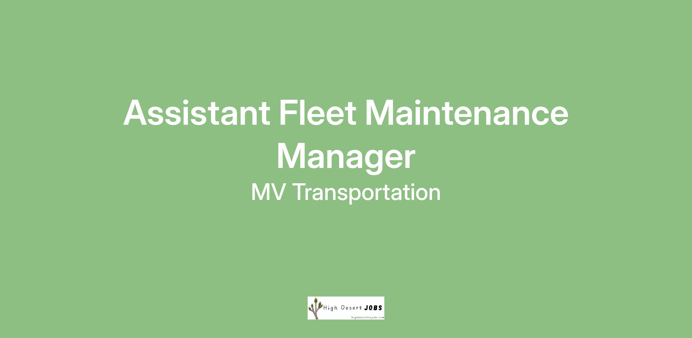 MV Transportation is seeking an Assistant Fleet Maintenance Manager to assist the Fleet Maintenance Manager with management of the day-to-day maintenance aspects of the operation of CNG and propane vehicles. The Assistant Fleet Maintenance Manager’s responsibilities will include, but not be limited to, assisting the Fleet Maintenance Manager with the oversight of maintenance personnel, the organization of the maintenance yard and various administrative duties. The Assistant Fleet Maintenance Manager shall be responsible for supervising the maintenance operation during shifts when the Fleet Maintenance Manager is not at the shop.