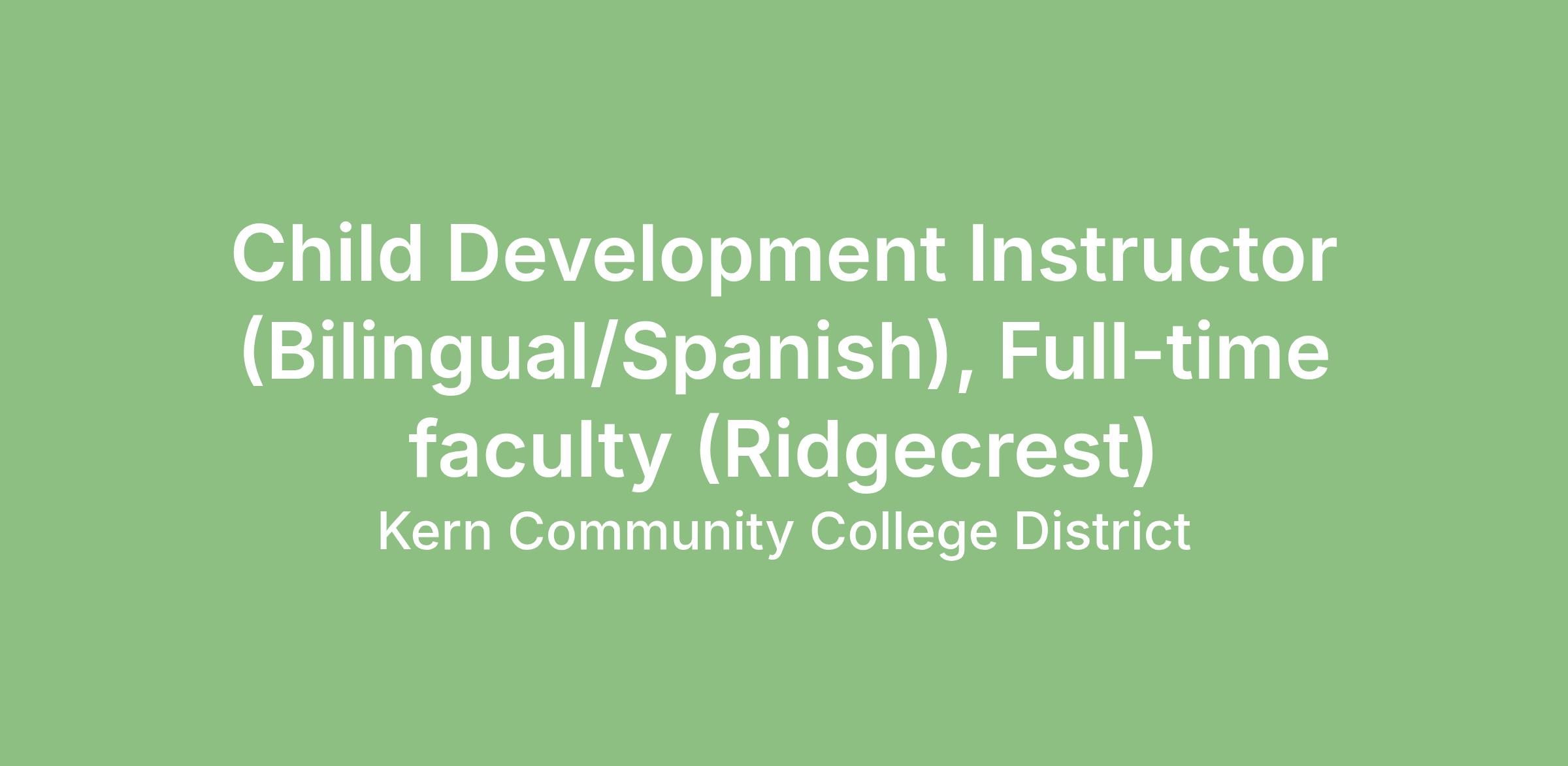 Minimum Qualifications Handbook Faculty and Administration in California Community Colleges AND – A demonstrated sensitivity to and understanding of the diverse academic, socioeconomic, cultural, disability, and ethnic backgrounds of community college students. Desirable QualificationsAbility to teach CHDV/ECE online courses in Spanish Ability to communicate effectively, in Spanish and English, both orally and in writing Experience working and teaching in early childhood settings Experience teaching online Familiarity and experience with organizations such as the California Child Development Training Consortium, California State Department of Education - Child Development Division, WestEd, NAEYC (National Organization for the Education of Young Children), and agencies that issues licenses and teaching credentials;