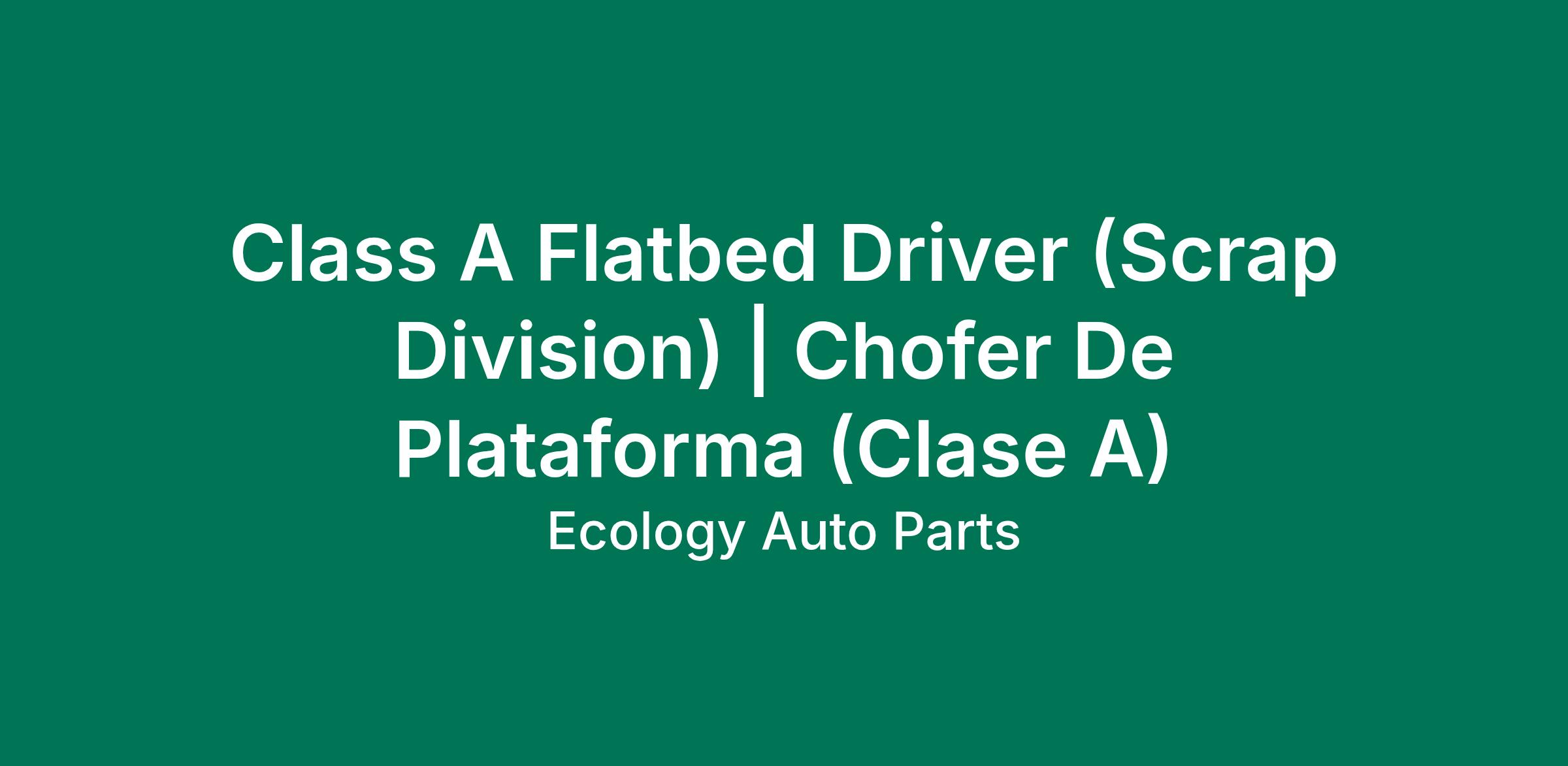 Ecology Auto Parts, Inc. is seeking a qualified and experienced Class A Driver to join our Transportation team. The ideal candidate will be responsible for the safe and efficient transportation of materials using flatbed trailers. This role requires a Class A commercial driver's license (CDL) and a strong commitment to safety and compliance with transportation regulations. The Flatbed Driver will play a crucial role in ensuring timely and secure deliveries while upholding our commitment to environmental sustainability.