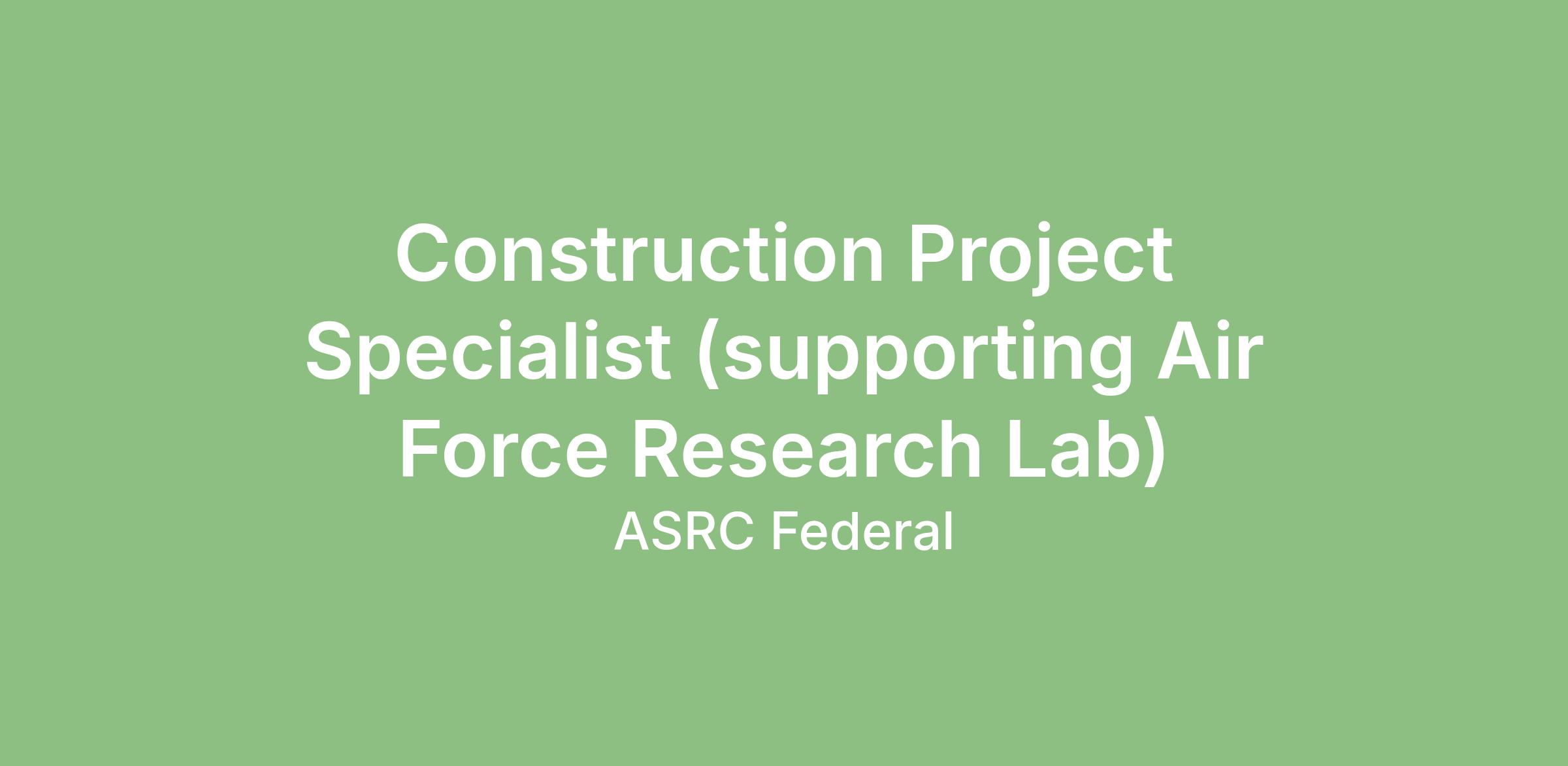 ASRC Federal Systems Solutions, a subsidiary of ASRC Federal, is seeking a full time Construction Project Specialist to support our nation’s premier Propulsion Test Complex, at the Air Force Research Laboratory, on Edwards Air Base, CA. This role will support a new Project that will proceed from designing the layout, then building the test site to then testing a new generation propulsion system. This will be an exciting opportunity to assist and shape the future.