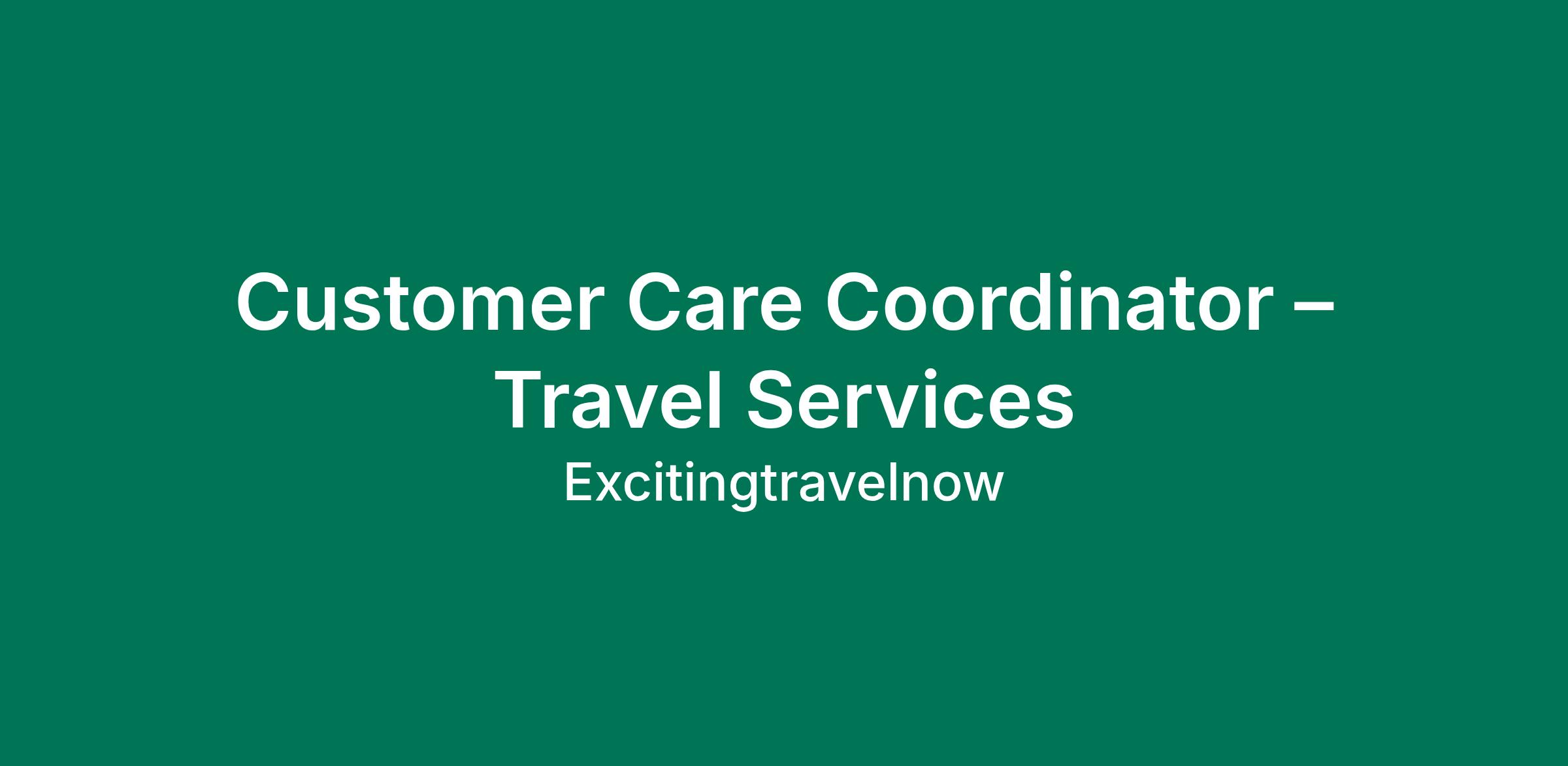 We are seeking a Customer Care Coordinator who is passionate about delivering excellent service and building positive client relationships. In this role, you will help guide travelers through the planning process while ensuring each client receives attentive, professional support.
