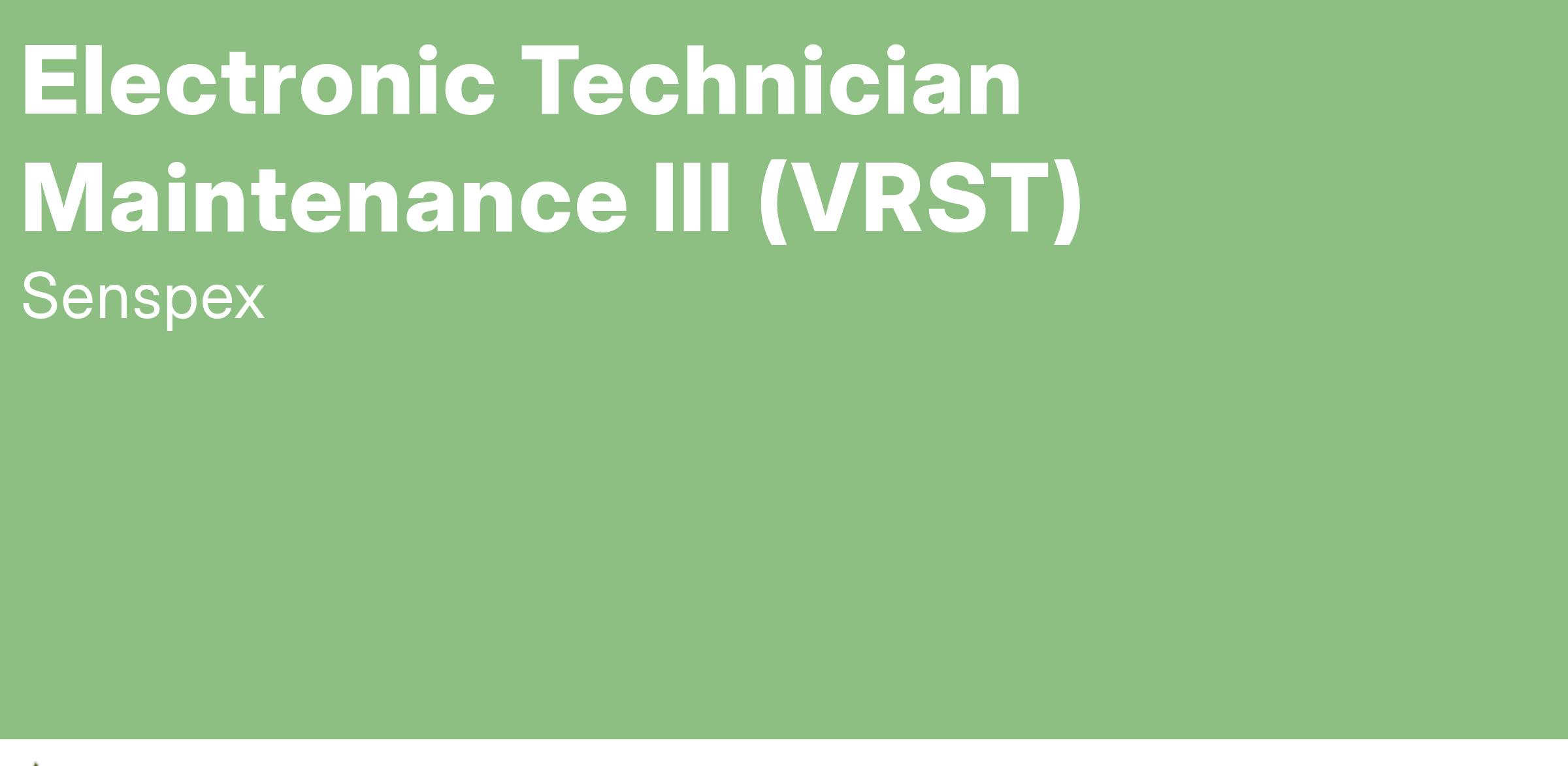 Senspex in Rio Rancho, New Mexico, is seeking to hire an Electronics Technician Maintenance III (VRST) for our team at the NTC in Ft Irwin, CA!