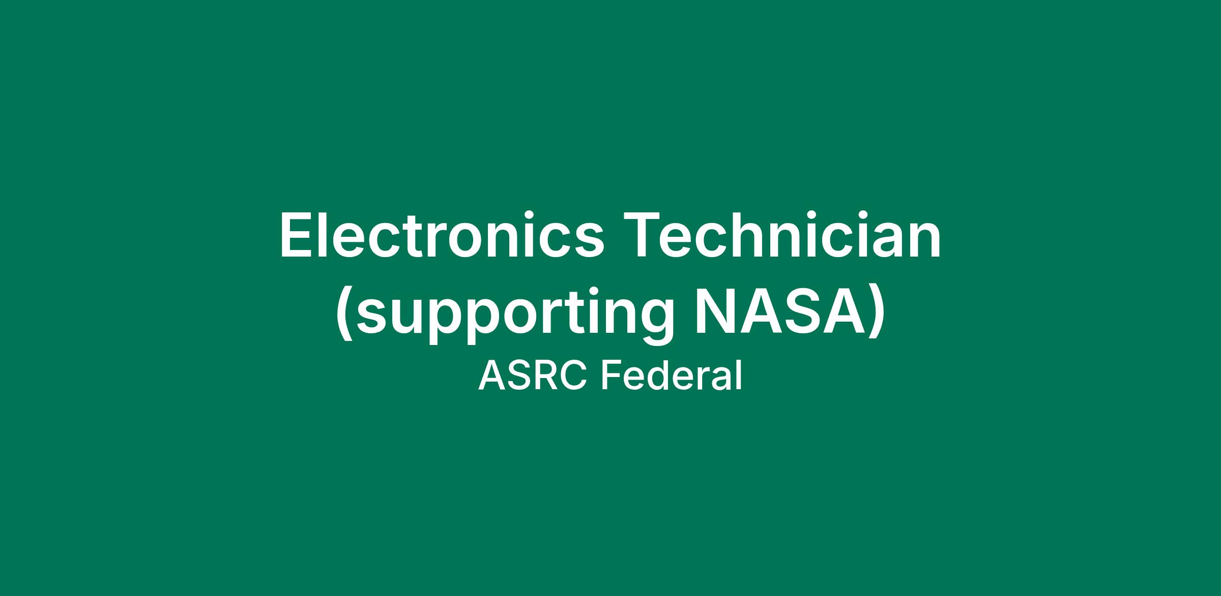 ASRC Federal System Solutions, an ASRC Federal subsidiary, is seeking an Electronics Technician I to join our NASA Armstrong Flight Research Center team. This position supports real-time aeronautics research and low earth orbiting space vehicles using radar and mobile tracking systems.