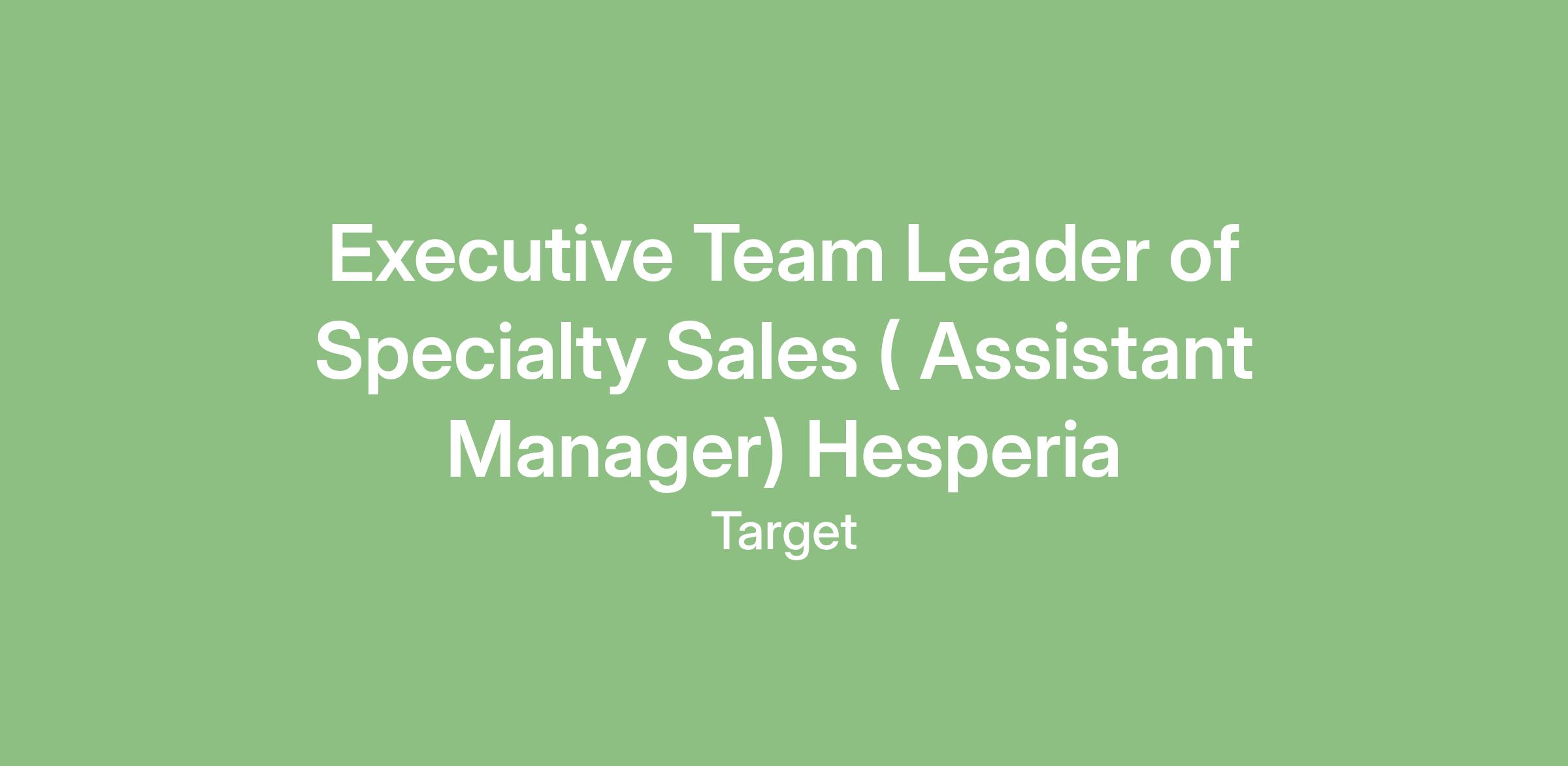 At Target, we believe in our team members having meaningful experiences that help them build and develop skills for a career. The role of a Specialty Sales Executive Team Leader can provide you with the: