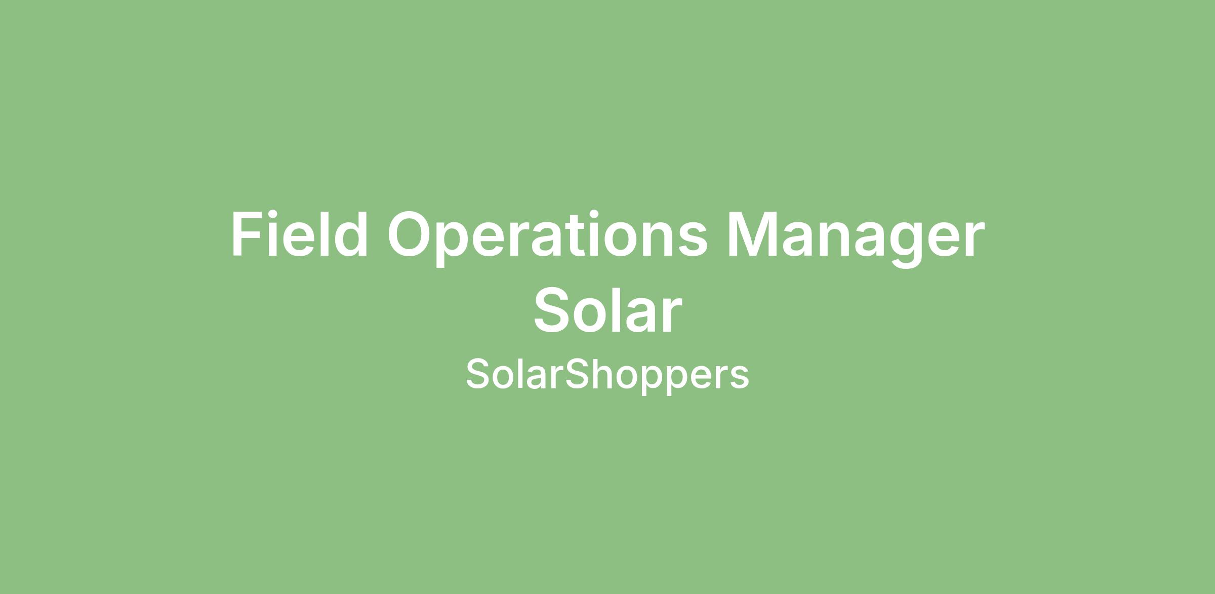 SolarShoppers Voted Best Solar Company is in search of an Experienced Solar Field Operations Manager.