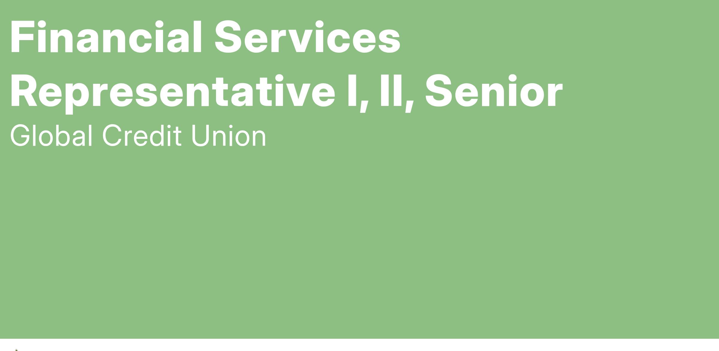 Experience/Skills: Passion for helping people and the drive to build relationships that assist members meet financial goals. Good communication and human relation skills. Ability to effectively ask open-ended questions, problem solve and provide solutions. Develop strong working relationships with coworkers and business line partners through collaboration. Must be able to lift 25 pounds
