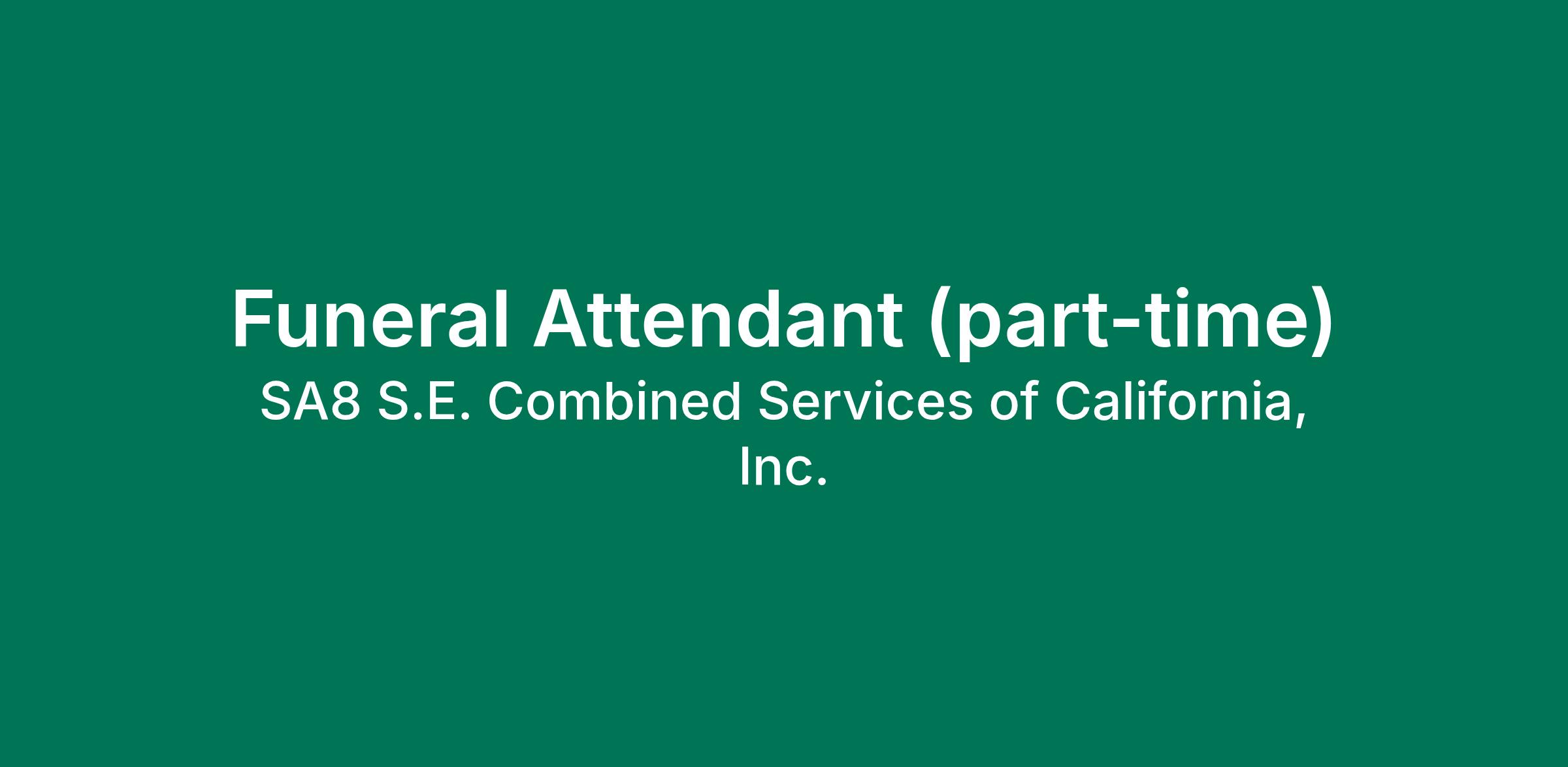 This support role performs a variety of manual and office tasks in preparation of, during and after funeral services to ensure services run smoothly and as planned. Duties include setting up rooms for ceremonies, copying memorial materials, greeting and escorting friends of the family, driving family members and cleaning vehicles. Funeral Attendants also assist with the preparation of the deceased and casket. The ability to work beyond standard business hours, including weekends and holidays, is required.