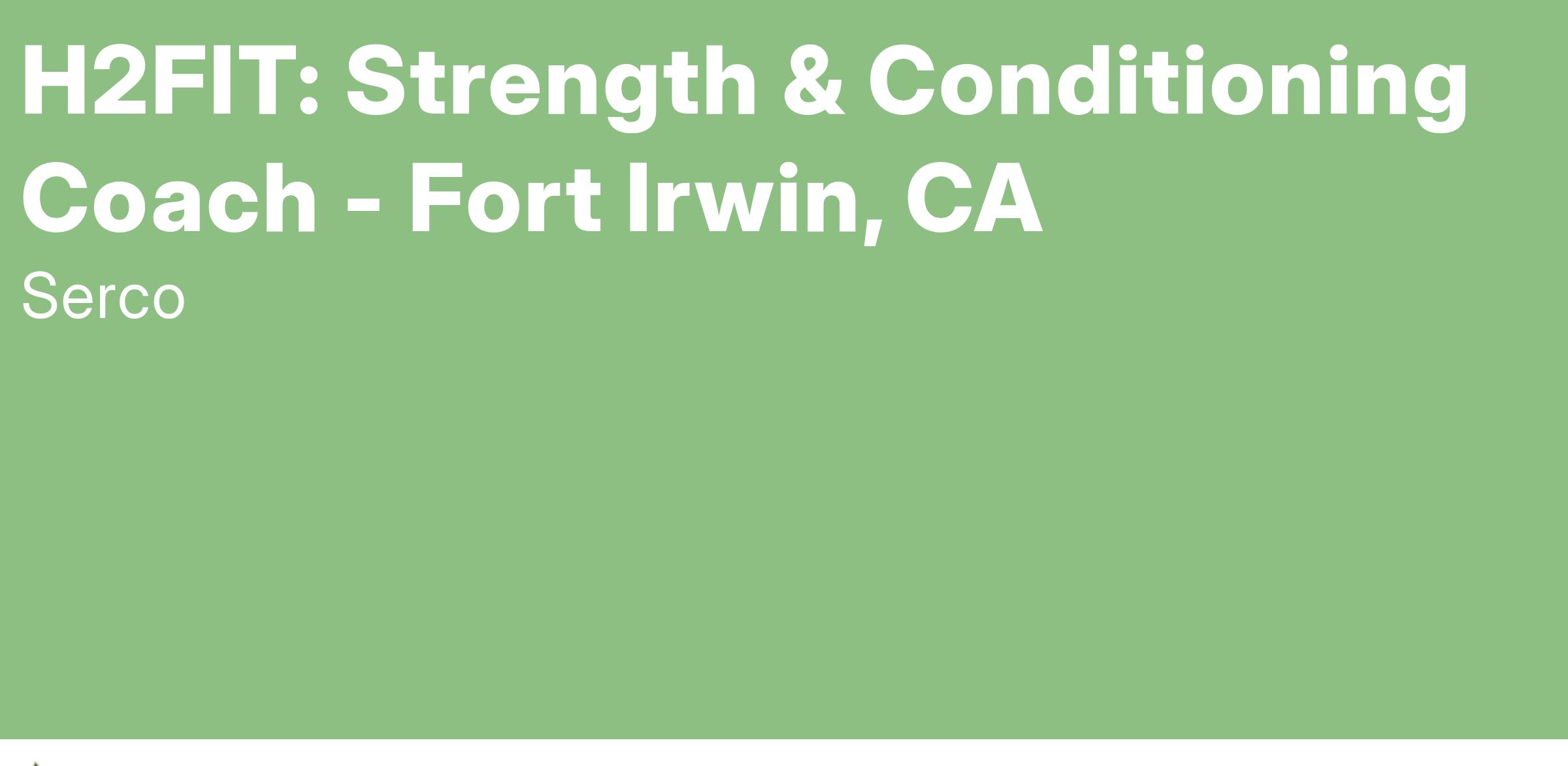 If you love high profile and challenging projects supporting the US Army, Serco has a great opportunity for you! This Strength and Conditioning Coach Certified (SCCC) will be on a dynamic team, supporting Holistic Health and Fitness (H2F) initiative, the Army’s investment in Soldier Readiness.