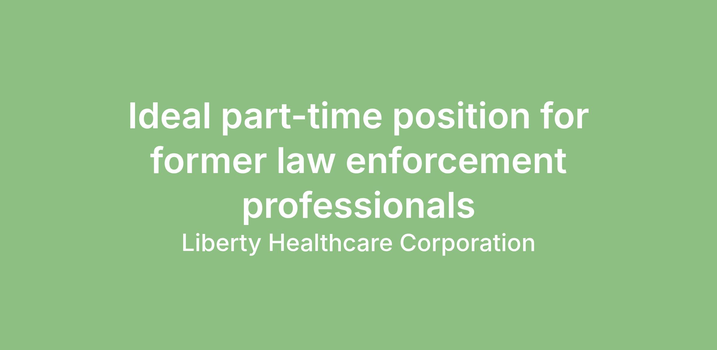 Experienced law enforcement professionals are encouraged to consider an outstanding part-time job opportunity with Liberty Healthcare and the California Conditional Release Program.