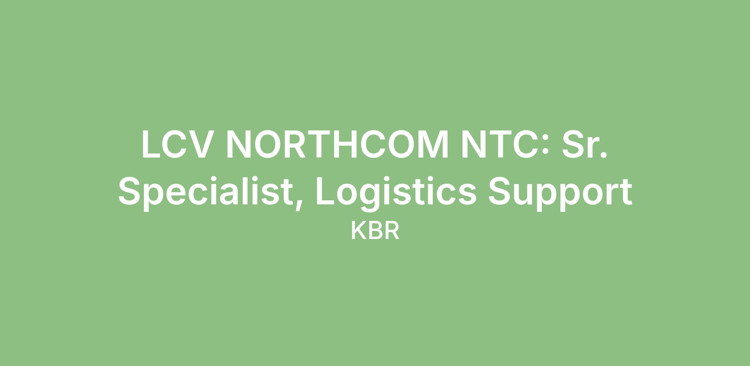 LCV NORTHCOM NTC: Sr. Specialist, Logistics SupportBelong, Connect, Grow, with KBR!