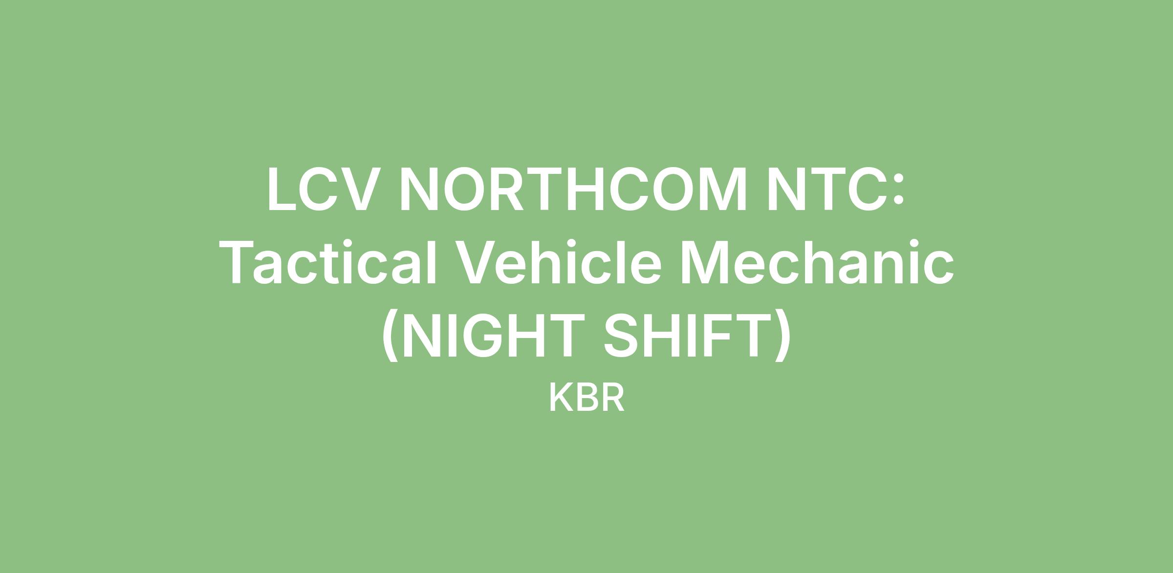 LCV NORTHCOM NTC: Tactical Vehicle Mechanic (NIGHT SHIFT)