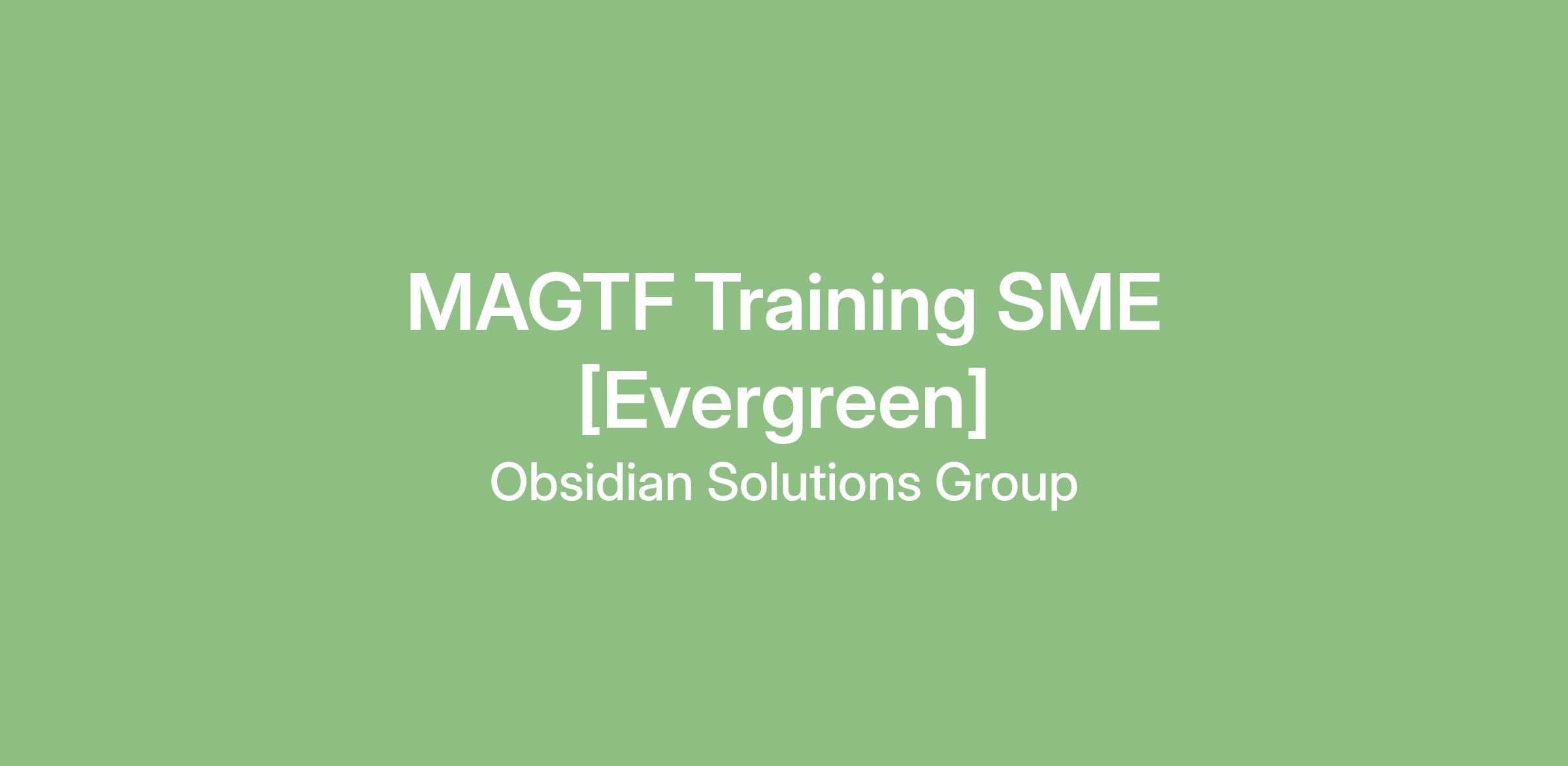 Obsidian Solutions Group (OSG) is seeking a MAGTF Training SME to join the Team!