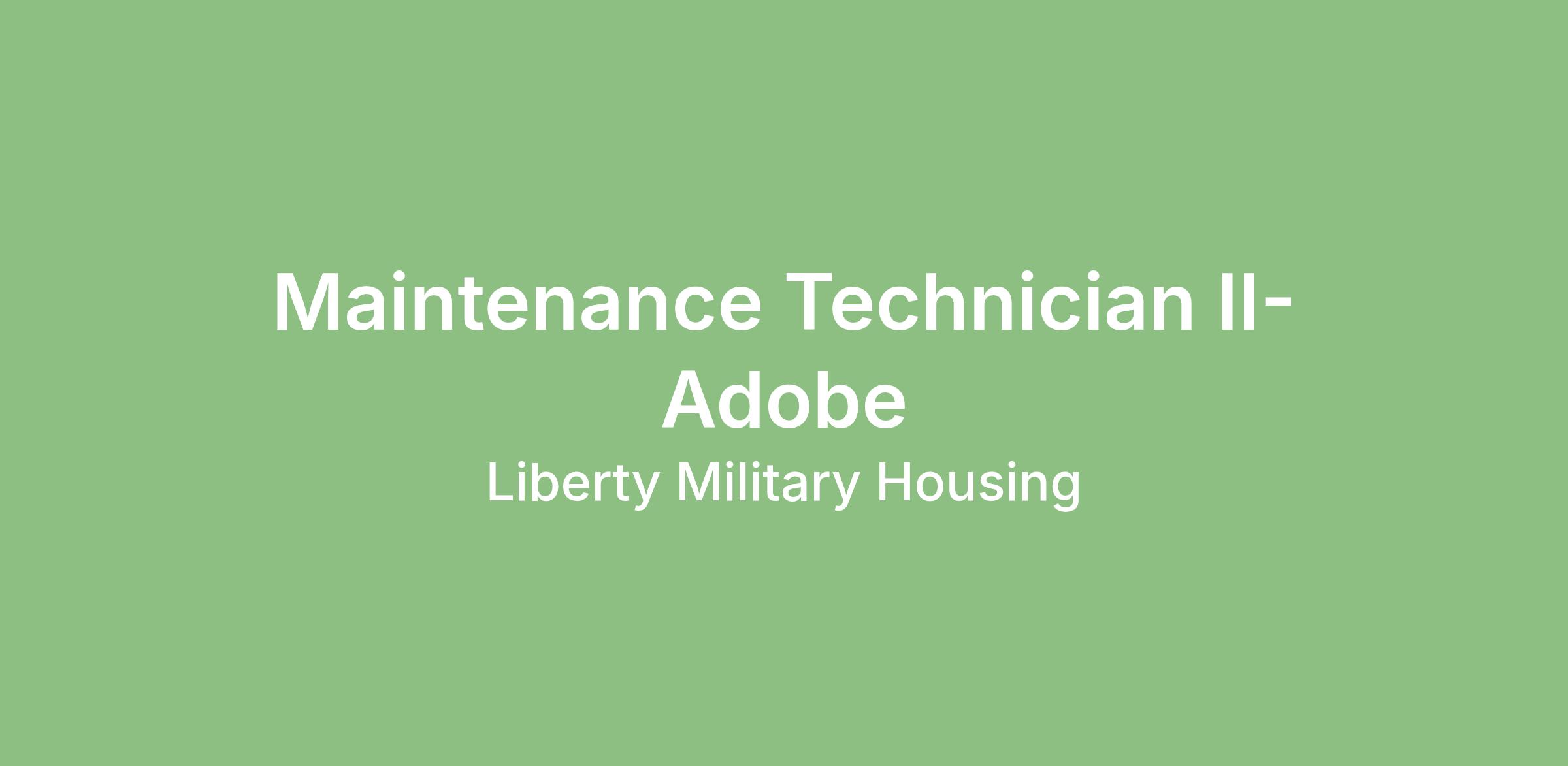 As a Liberty Military Housing Service Technician II, you will perform general and specialized maintenance and repairs in a multi-family residential community. You will operate building systems and related equipment and tools to complete tasks to Liberty Military Housing’s quality standards. Your role requires the ability to effectively communicate, perform quality work in a safe manner and deliver on our mission of providing exemplary service in accordance with Liberty Military Housing’s quality customer satisfaction standards.