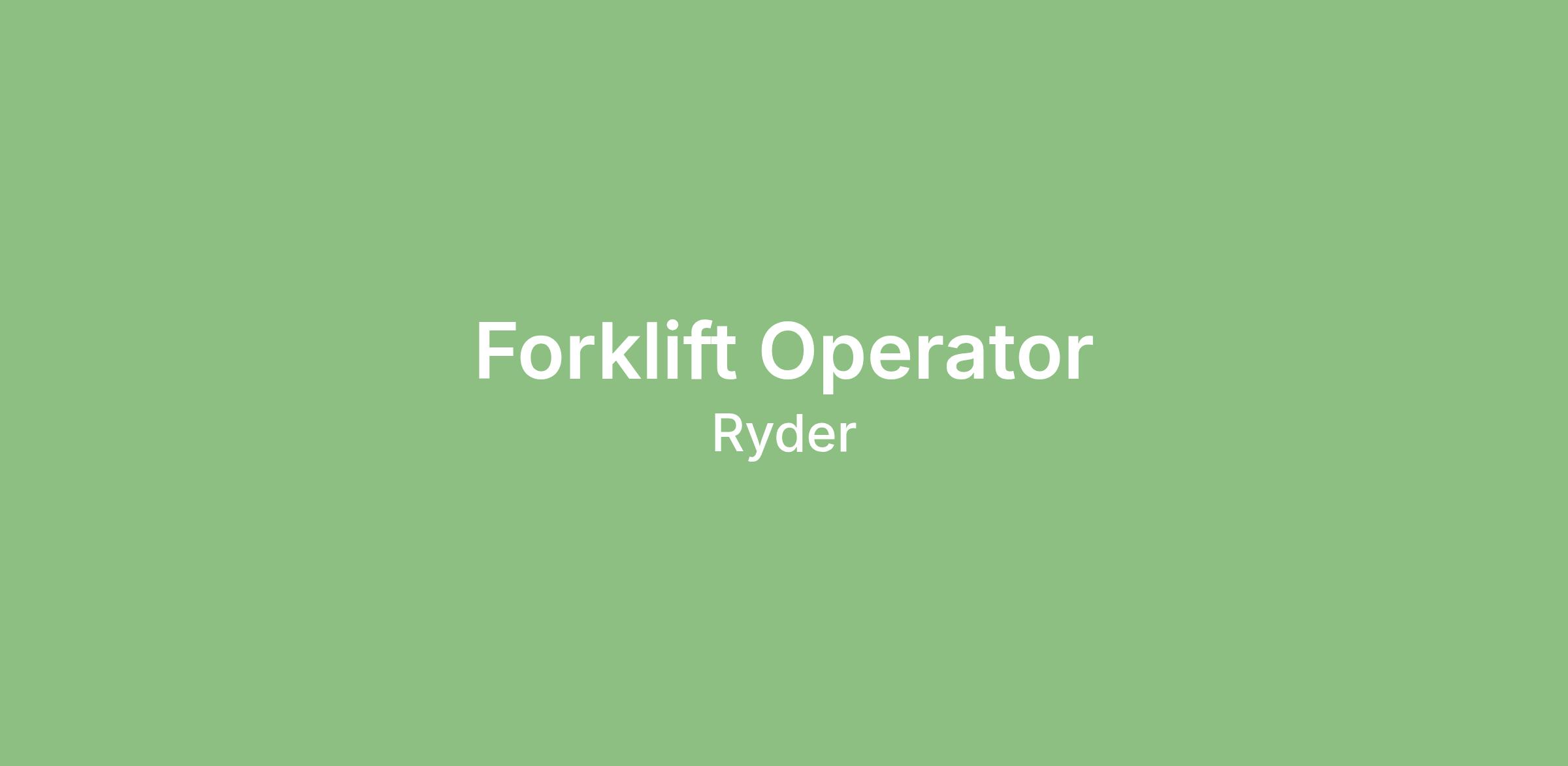Ryder is immediately hiring a Permanent Full Time Forklift Operator in Victorville, California