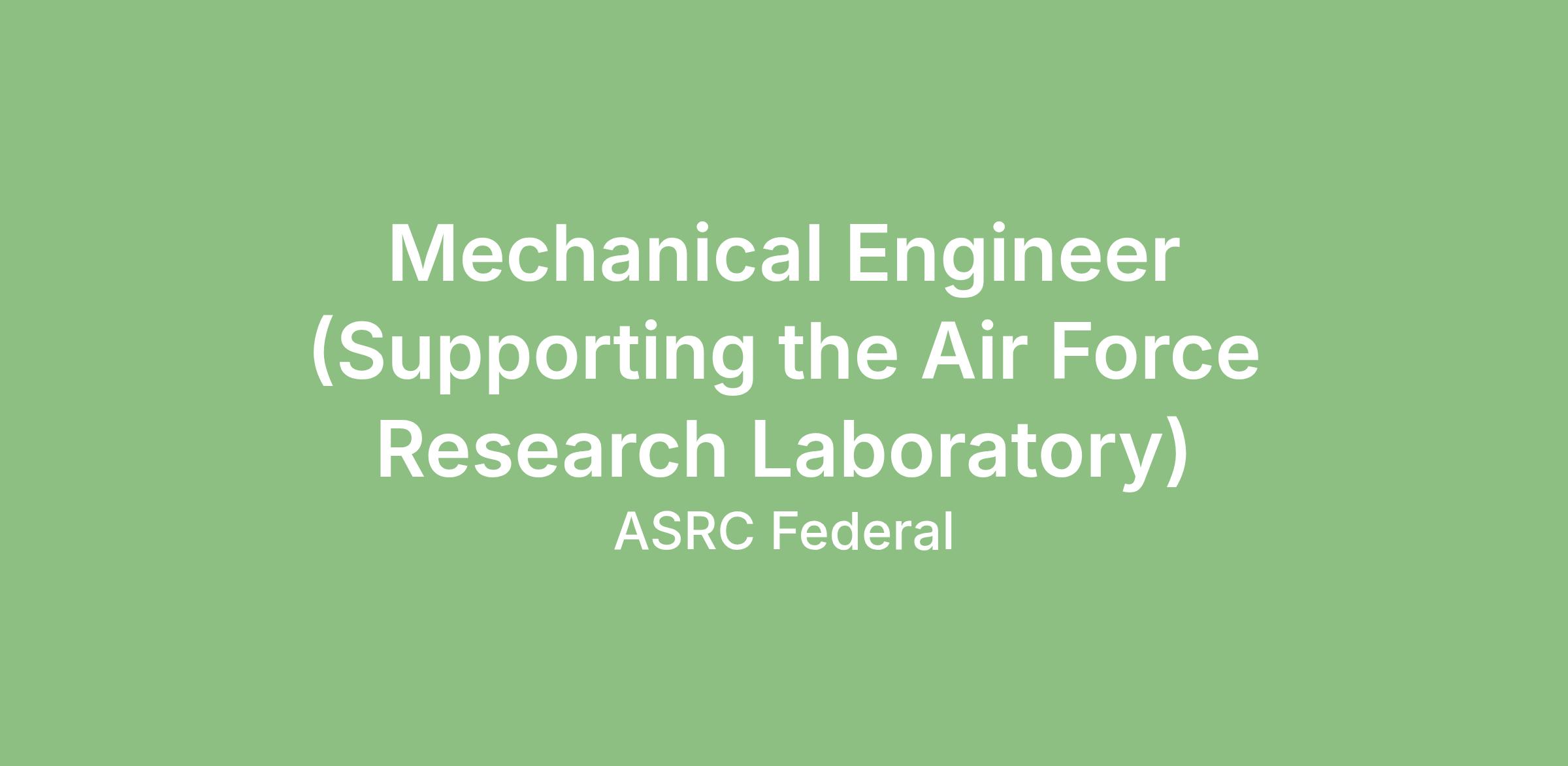 ASRC Federal System Solutions LLC, a subsidiary of ASRC Federal, is seeking a Mechanical Engineer to support our work at the Air Force Research Laboratory (AFRL) at Edwards, AFB, CA.