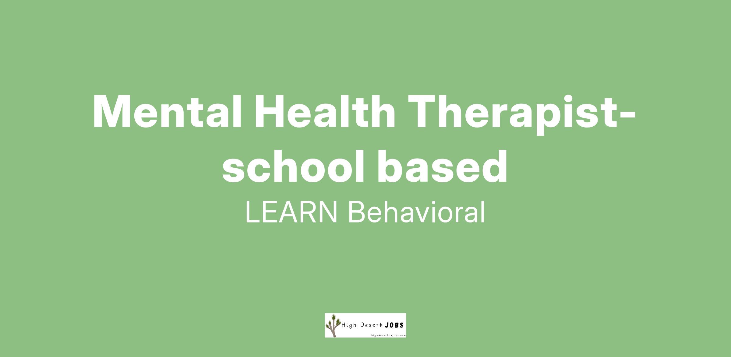 Learn Academy is looking for a Part-Time fully licensed Mental Health Therapist for for our location in Victorville, CA.