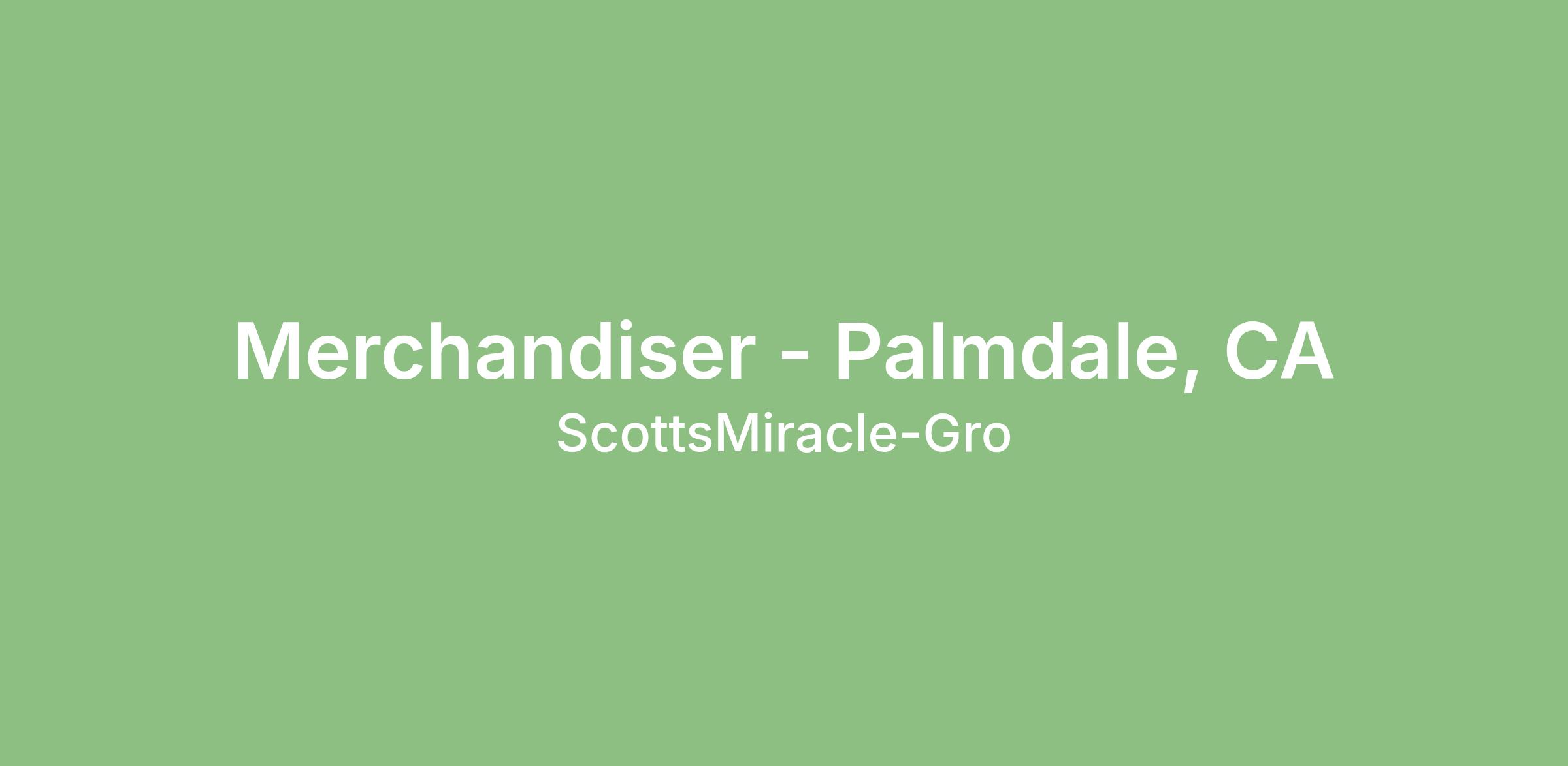 Seasonal Merchandisers report directly to a Sales Manager and work within our big box retailers, such as Home Depot and Lowe's. As part of the day-to-day responsibilities Merchandisers execute merchandising directives and re-sets, establish a positive rapport with store personnel and customers, and relay information to Scotts Sales team regarding inventory opportunities.