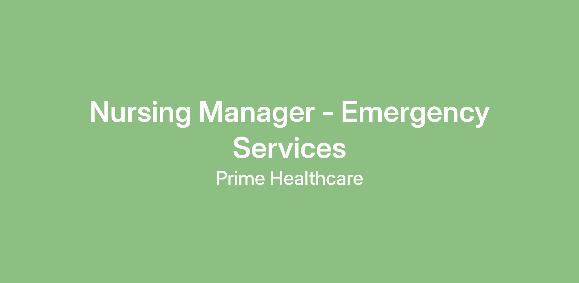 Manager of Emergency Department is responsible for the day to day management and coordination of all activities in the Emergency Department. Supervises and monitors performance of the Emergency Department staff. Interacts with the physicians, hospital staff, outside agencies, patients and patients families/significant other(s) to provide comprehensive care.