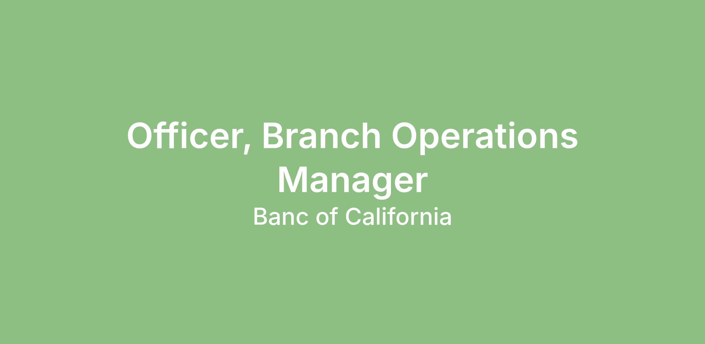 BANC OF CALIFORNIA AND YOUR CAREER