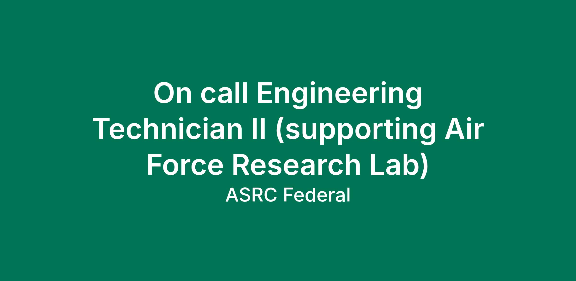 ASRC Federal System Solutions LLC, a subsidiary of ASRC Federal, requires a highly motivated On-Call Engineering Technician II to support the ASTROS Contract. We are looking for someone with good mechanical ability. ASRC Federal is supporting cutting edge propulsion systems testing at the Air Force Research Laboratory (AFRL) and we are looking for the best people to be a part of this research.