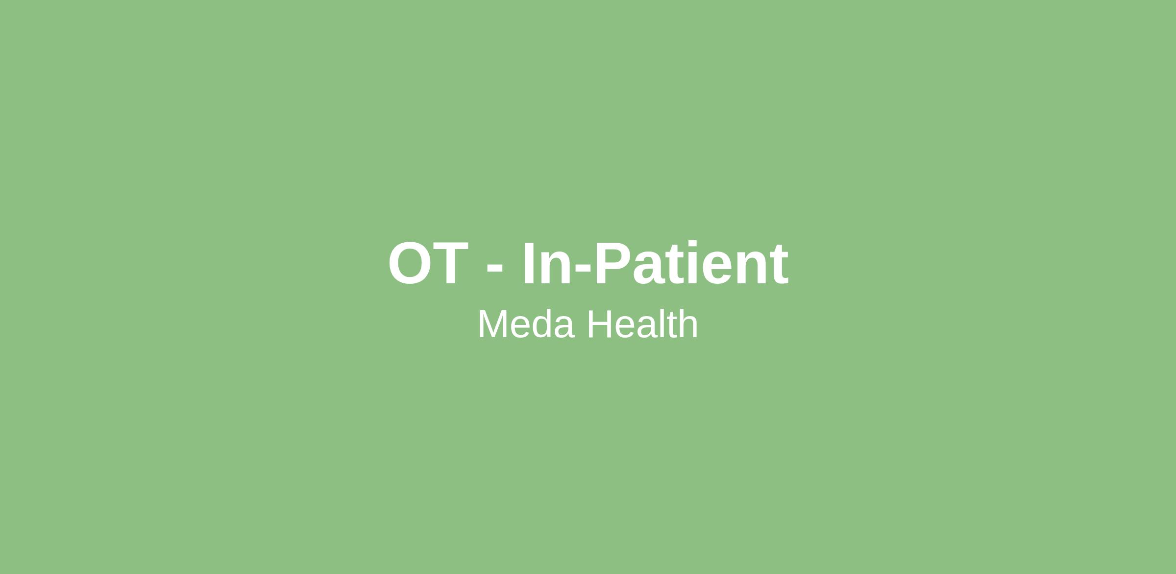 Meda Health is looking for a Occupational Therapist to work a travel assignment in an acute care hospital setting. Must have at least two years of experience, state licensure and BLS.