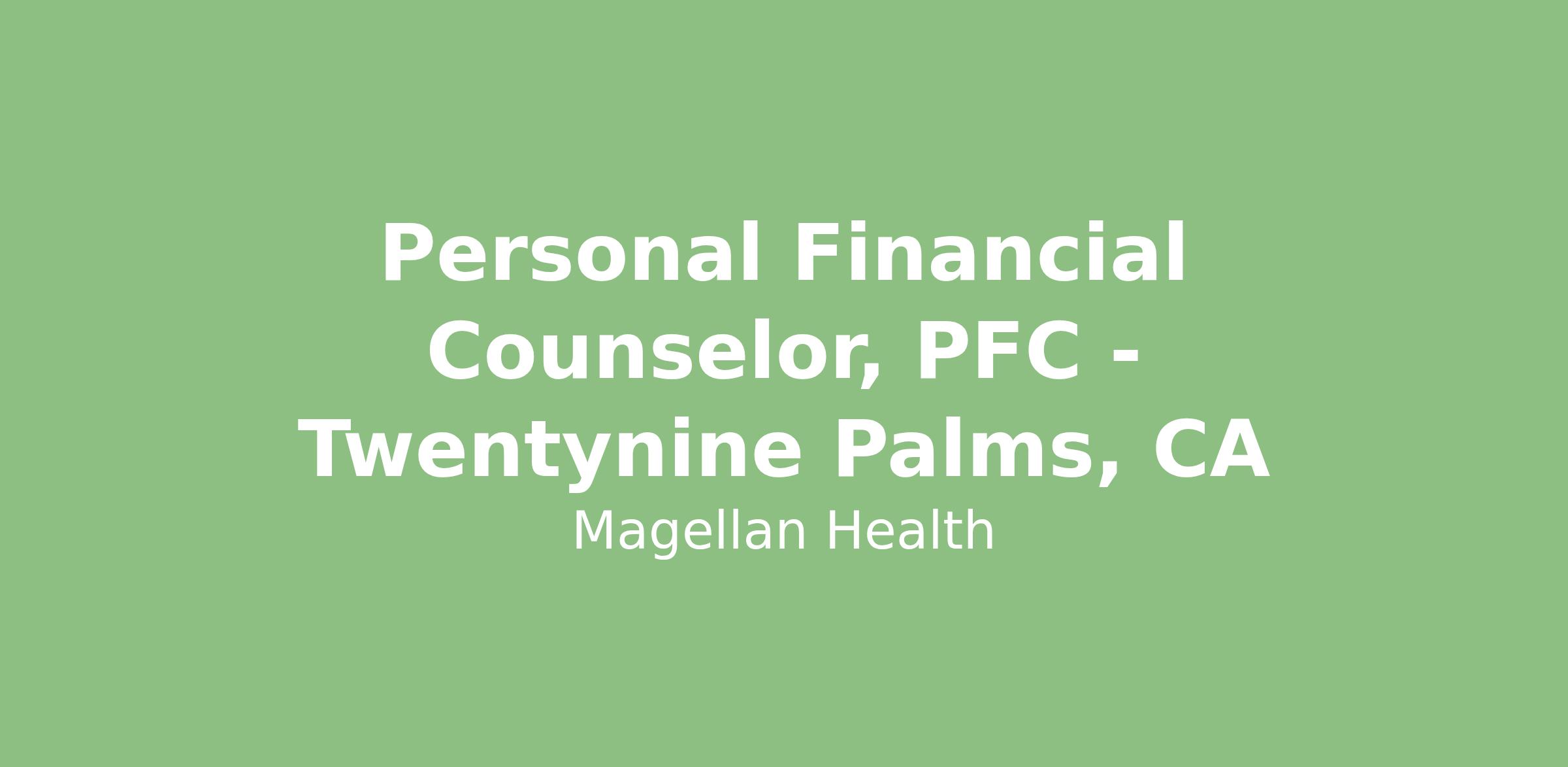 Personal Financial Counselor, PFC - Twentynine Palms, CAGrade