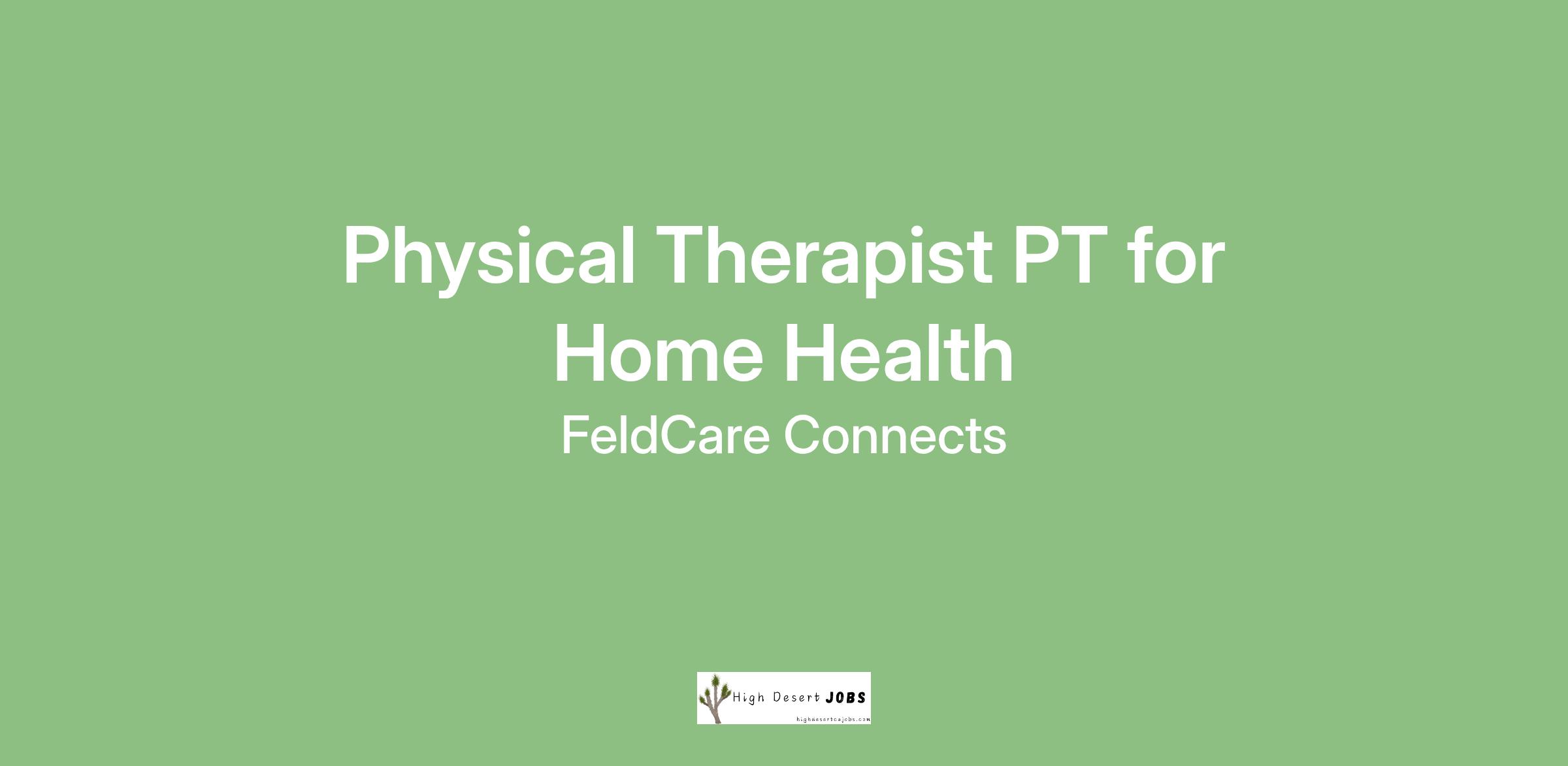 FeldCare Connects, an app-based referral network, is seeking an enthusiastic, self-motivated Physical Therapist to deliver quality home healthcare to patients of all ages.