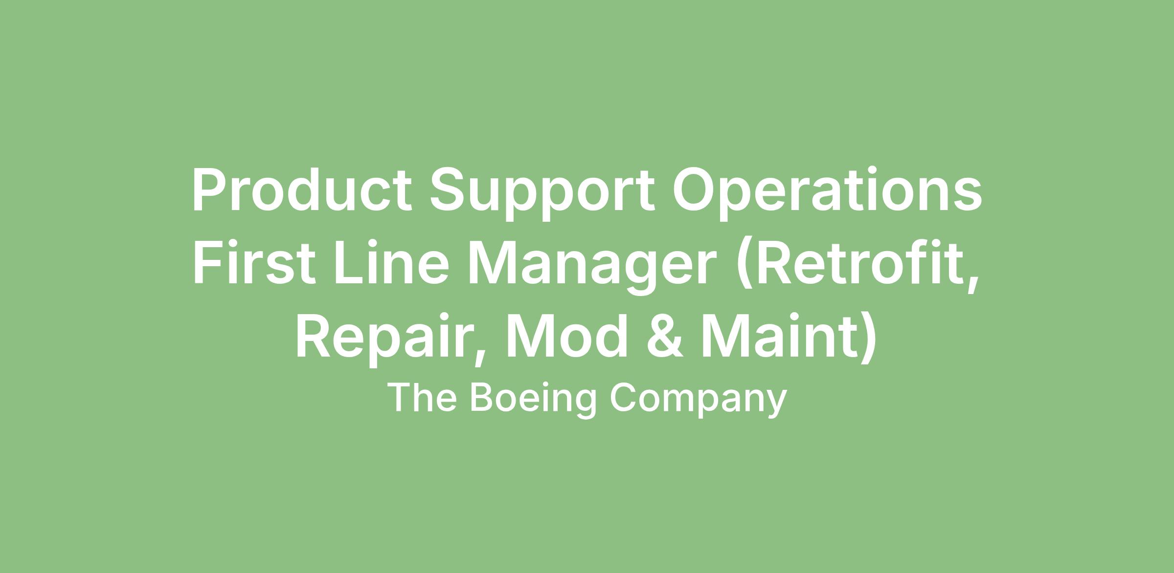 The Boeing CompanyBoeing Global Services (BDS) Operations team is seeking a First-Line Product Support Operations Manager to join the team in Victorville, CA.