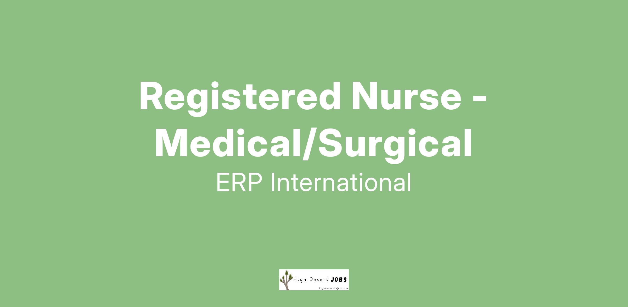 ERP International is seeking a Registered Nurse (RN) for a full-time position in support of the Multi-Service Ward (MSW) at the Naval Hospital Twentynine Palms, CA. Apply online today and discover more about this exceptional employment opportunity. www.erpinternational.com