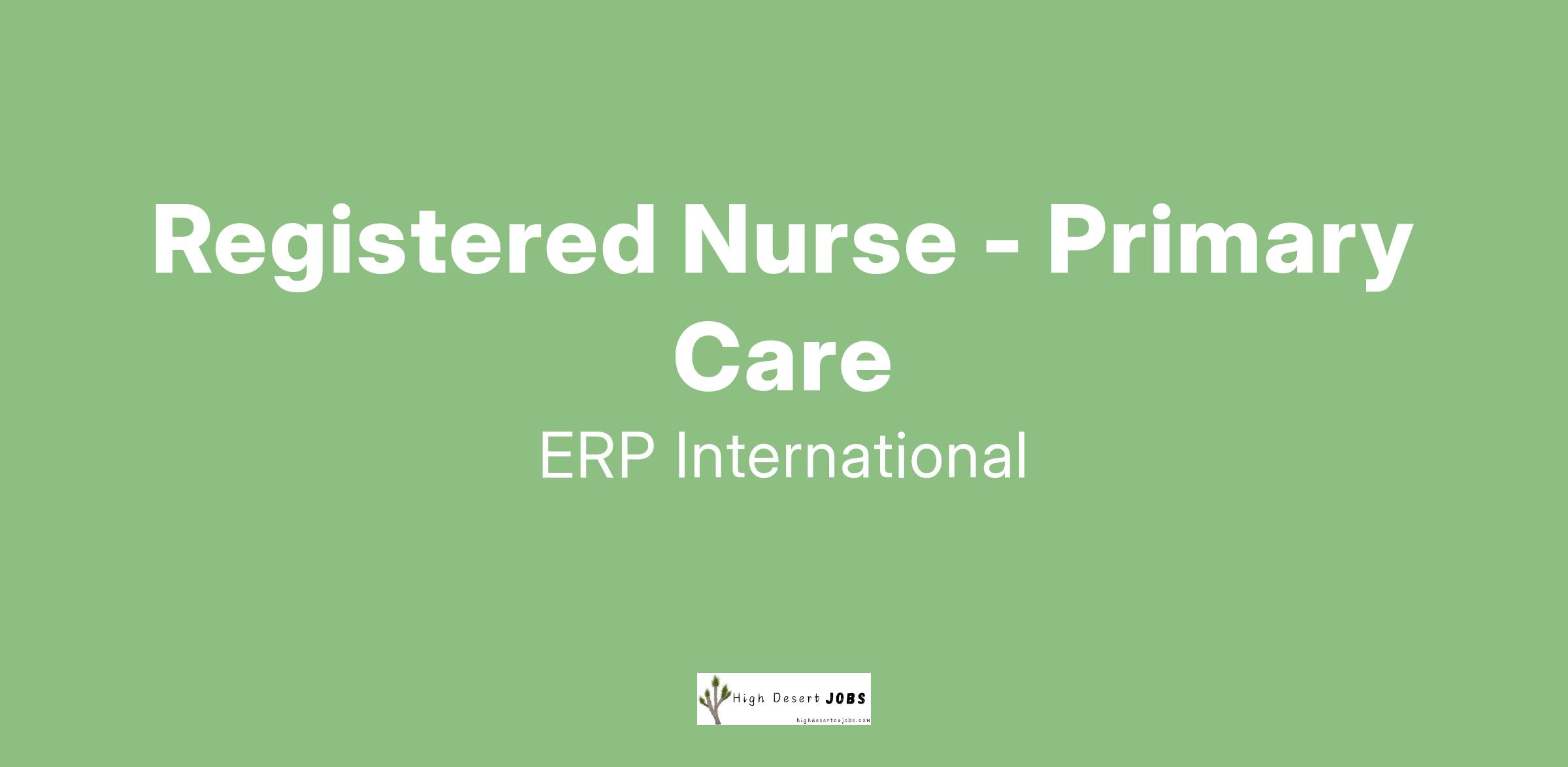 ERP International is seeking Registered Nurse (RN) for full-time primary care opportunity in support of the PCMH at the Naval Hospital Twentynine Palms, CA. Apply online today and discover more about this exceptional employment opportunity. www.erpinternational.com