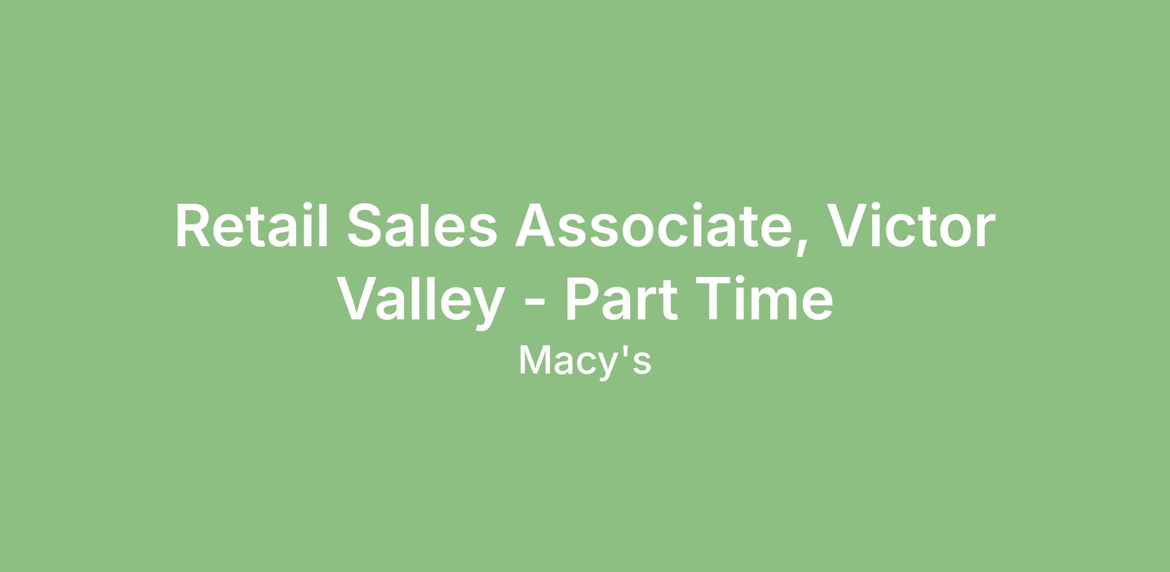 This job description is not all-inclusive and may not apply to colleagues covered by a collective bargaining agreement. Macy's Inc. reserves the right to amend this job description at any time. Macy's Inc. is an Equal Opportunity Employer, committed to a diverse and inclusive work environment.