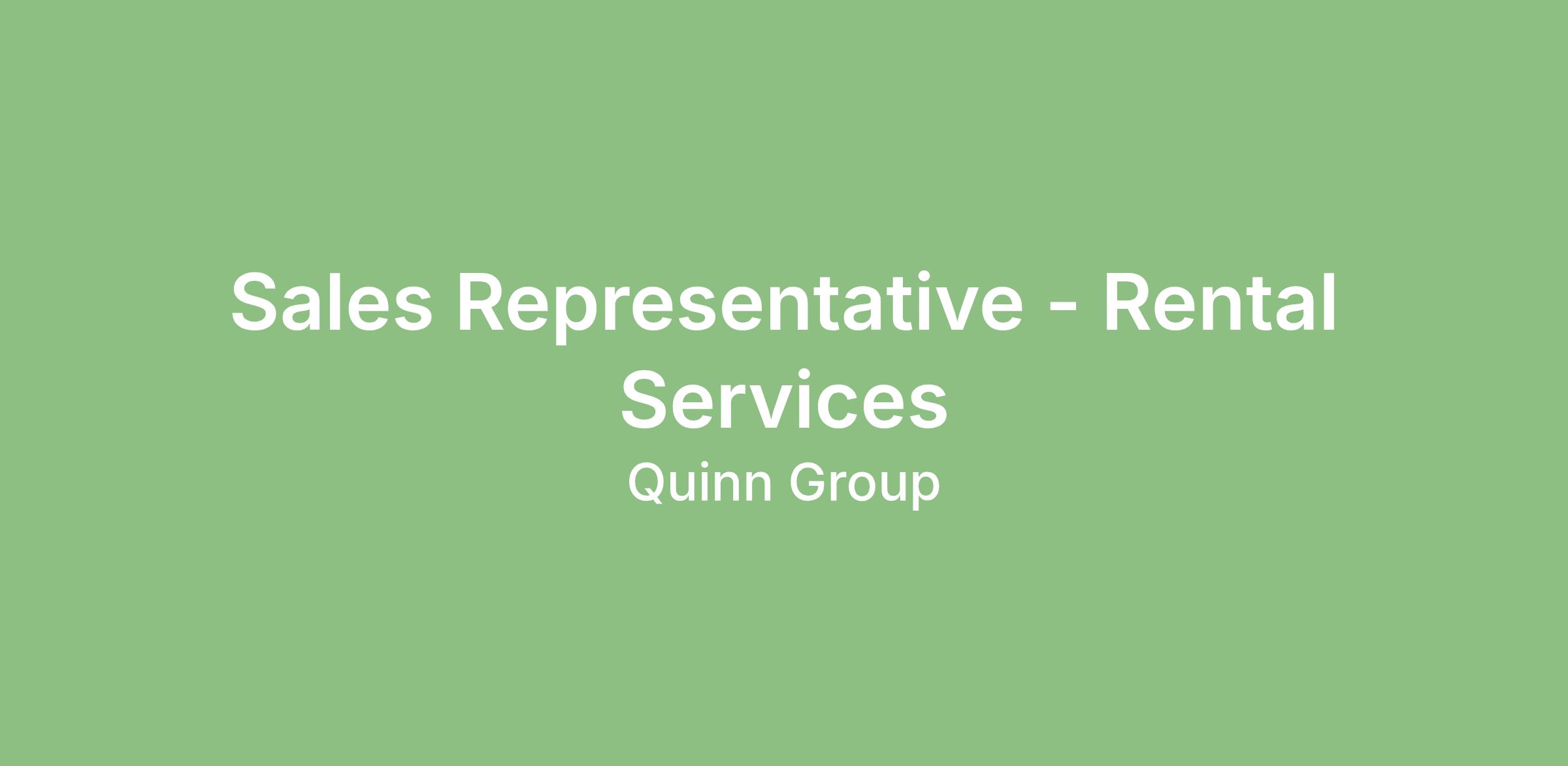 The Sales Representative - Rental Services will generate rental and sales leads in an assigned geographic territory.