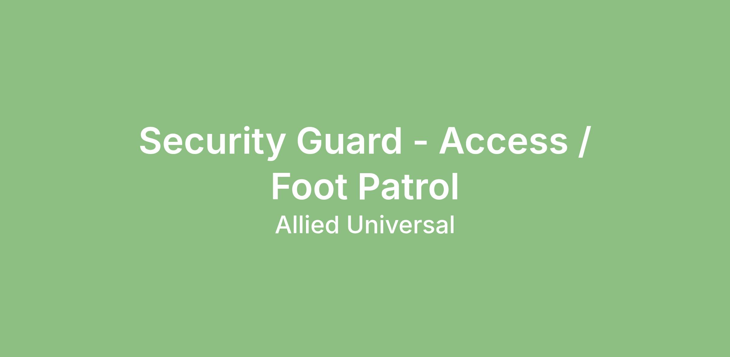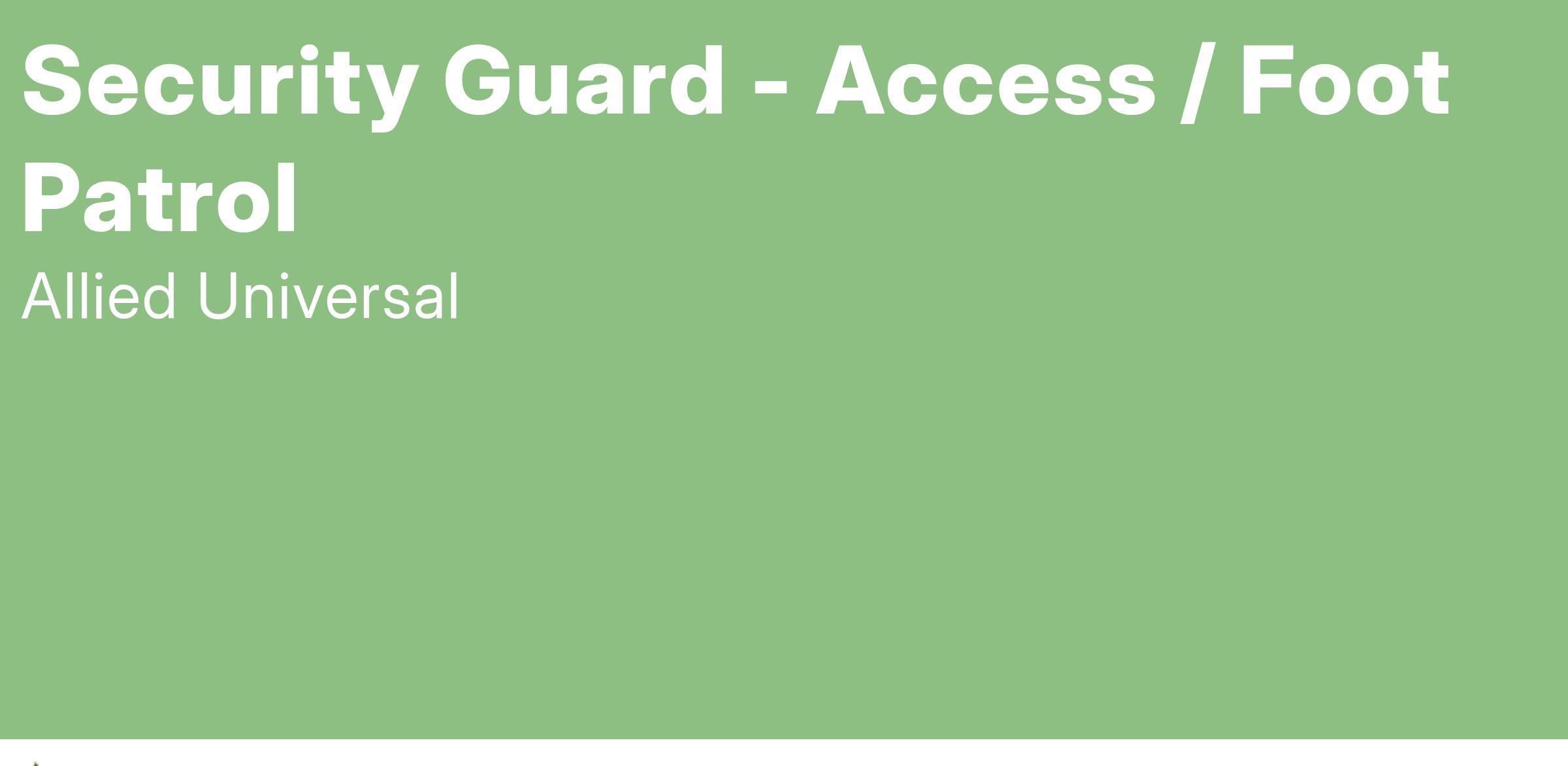 Allied Universal® is an Equal Opportunity Employer. All qualified applicants will receive consideration for employment without regard to race/ethnicity, age, color, religion, sex, sexual orientation, gender identity, national origin, genetic information, disability, protected veteran status or relationship/association with a protected veteran, or any other basis or characteristic protected by law. For more information: www.aus.com