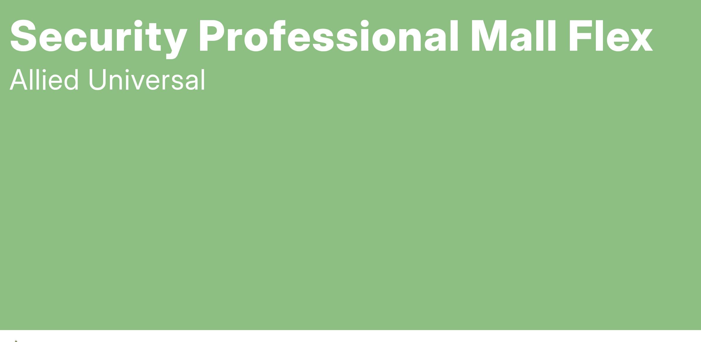 Allied Universal® is hiring a Security Professional Flex Officer. The Security Professional Flex Officer will serve and safeguard clients in a range of industries such as Healthcare, Education, Finance and more. Join a leading team where flexibility meets opportunity. As a Security Professional Flex Officer, you’ll use our exclusive shift-pickup platform to view and claim open shifts based on your availability - giving you the freedom to build a schedule that works for you, while gaining valuable site experience across various industries. Whether you're looking to supplement your income or take the first step toward a full-time role and phenomenal career, this position offers unmatched access to hands-on experience and growth opportunities. The Security Professional Flex Officer may be called upon to work irregular shifts at times with little to no advance notice.