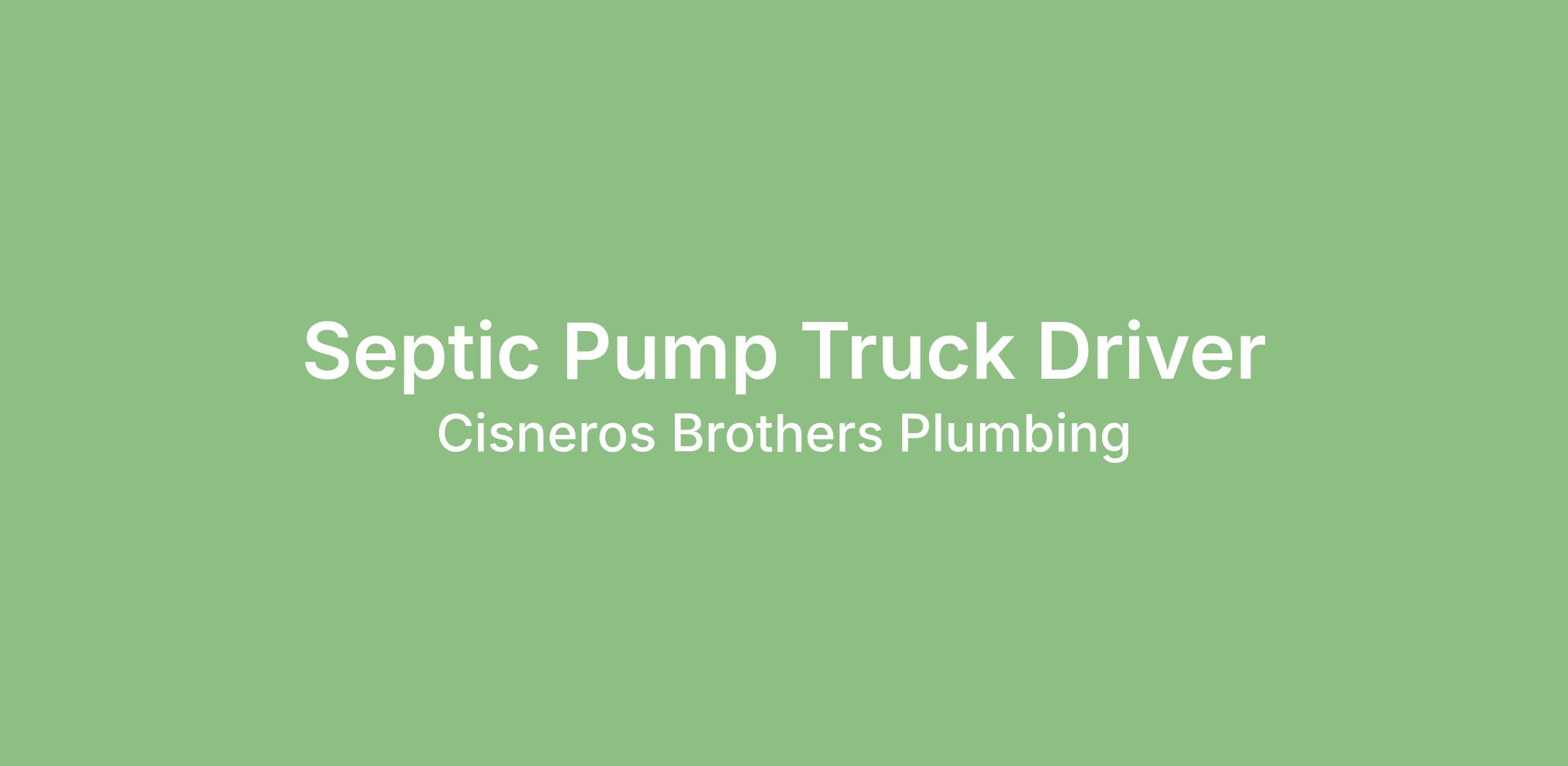 Cisneros Brothers Home Services is a locally owned and operated plumbing company seeking a reliable and safety-conscious Septic Pump Truck Driver to join our growing team.