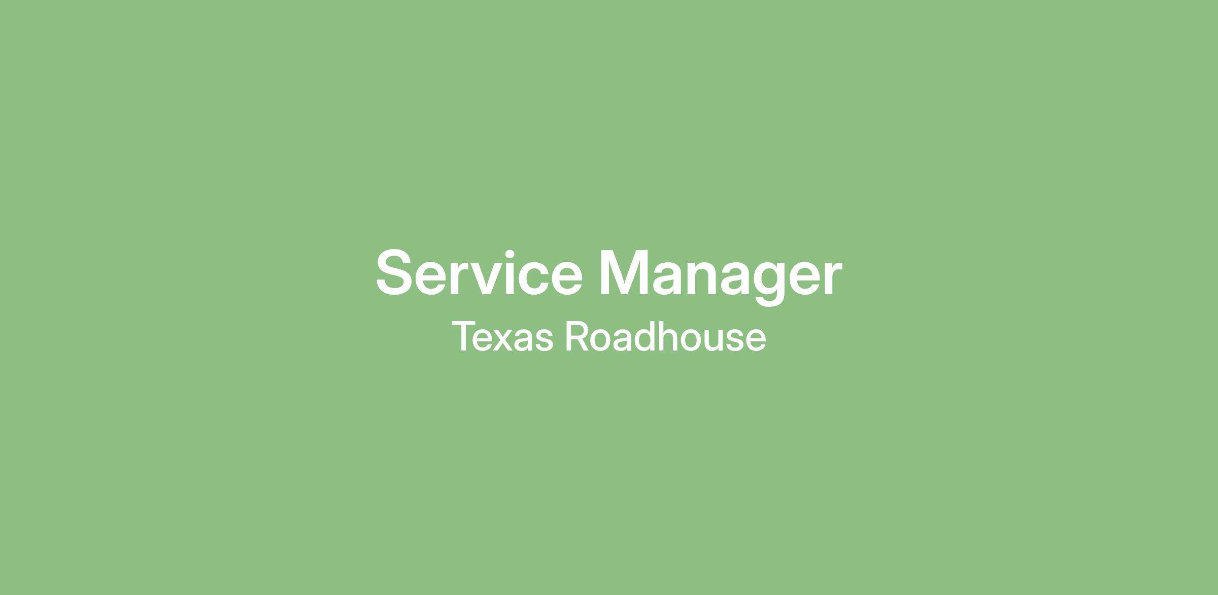 Texas Roadhouse is looking for a legendary Service Manager to oversee all Front of House daily operations, manage all Front of House employees, and make sure Legendary Food and Legendary Service is delivered to our guests. If you have a passion for people and providing a legendary guest experience, apply today!