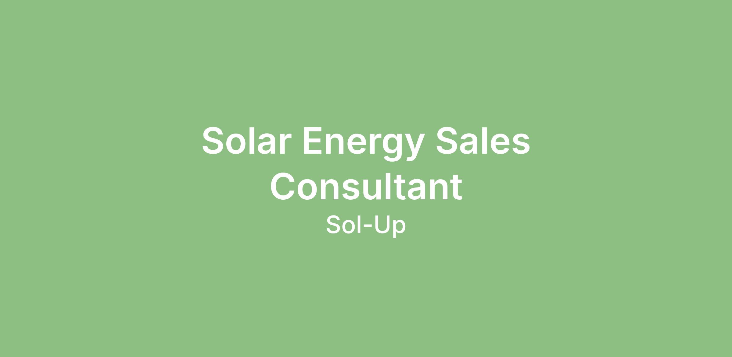 We are seeking a motivated and enthusiastic Solar Energy Consultant to join our growing sales team. In this role, you will be responsible for generating leads, providing information to potential customers, and closing sales to help homeowners and businesses transition to renewable energy. You will educate clients on the benefits of solar energy and the financial savings associated with installing solar panels. With paid training, full-benefits and unmatched industry experience and resources, we provide our sales team with every tool they could possibly need, right at their fingertips. If you want to be a part of the renewable energy industry and the impact it has on our community by beginning or continuing a career that will take you into retirement, look no further.