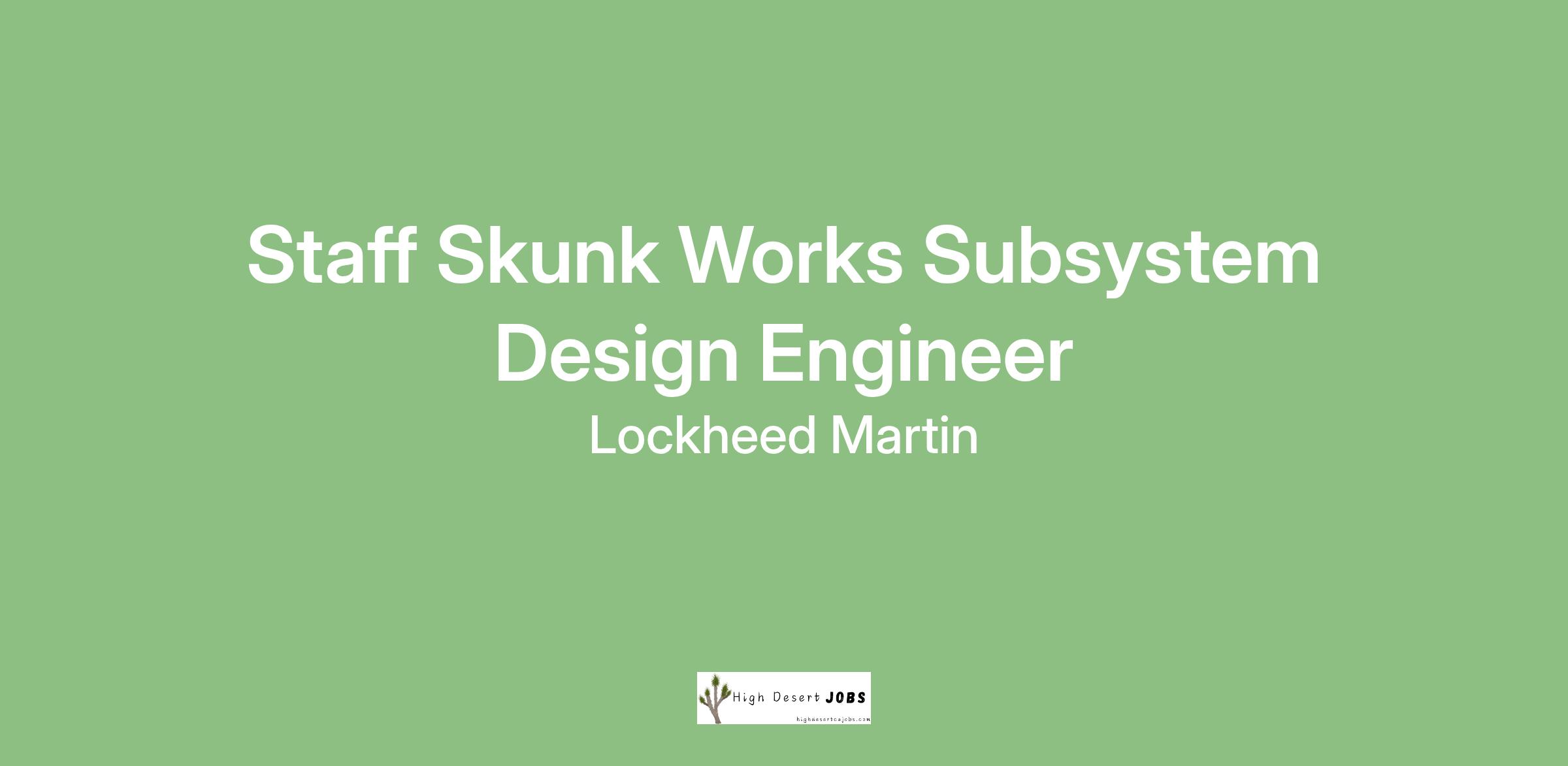 We are Lockheed MartinLockheed Martin Aeronautics in seeking a full-time Subsystem Design Engineer for the Advanced Development Programs (Skunk Works®) in Palmdale, California. A successful candidate will apply technical expertise in developing solutions to aircraft subsystems design and installation problems. Responsibilities for this position may include: