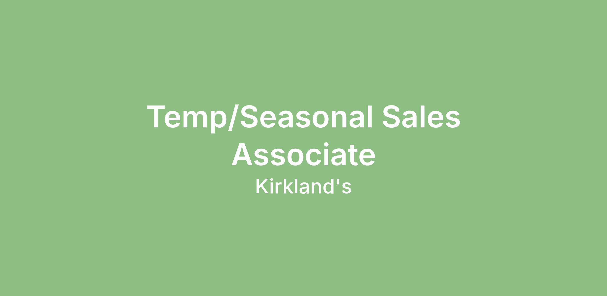 The primary responsibility of a Sales Associate is to provide an exceptional shopping experience to every customer utilizing Kirklandβs Home customer service model while assisting with all aspects of operations and merchandising with partnership and direction from the management team. Sales Associates drive sales growth by flexing into multiple roles including selling, cashiering, replenishing, setting floorsets and/or cleaning. Serving the customer is always top priority regardless of the work area.