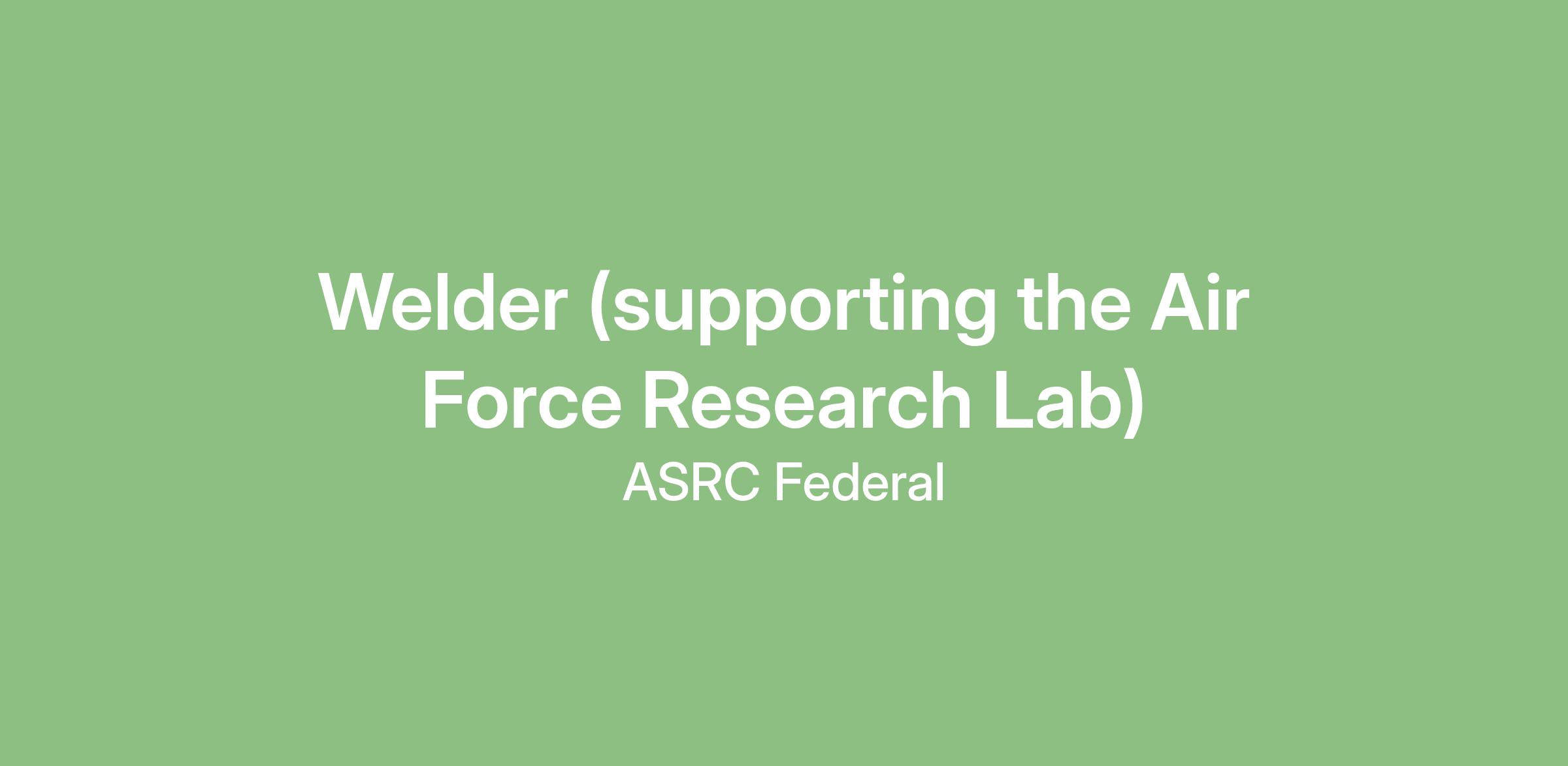 ASRC Federal System Solutions, a subsidiary of ASRC Federal, is seeking a Welder to support one of our major Prime programs at the Air Force Research Laboratory at Edwards AFB, CA.